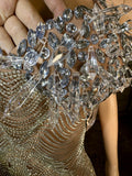 Brillez de mille feux dans cette robe courte scintillante pour femme, ornée de strass et de diamants scintillants. Dotée d'empiècements en maille transparente et sexy, cette tenue accrocheuse est parfaite pour un bal de fin d'année, une fête, une soirée, un anniversaire ou un spectacle. Faites tourner les têtes et respirez la confiance à chaque pas !