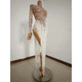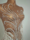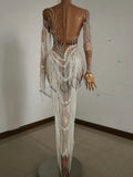 Sparkly Rhinestones Sequins Fringes Birthday Celebrate Evening Dress Women Sexy Mesh Transparent Dance Costume Photo Shoot Wear