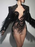 Ensemble 2 pièces robe courte, châle, paillettes et strass scintillants, sexy, transparent, costume de danse d'anniversaire, tenue de scène pour chanteur