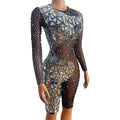 Combinaison extensible à strass scintillants argentés pour femme, tenue de fête d'anniversaire, noire, transparente, en maille et cristal, costume de scène DS