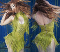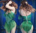 Superbe body de danse à pompons et strass pour femme - Tenue de scène, de discothèque et de fête