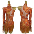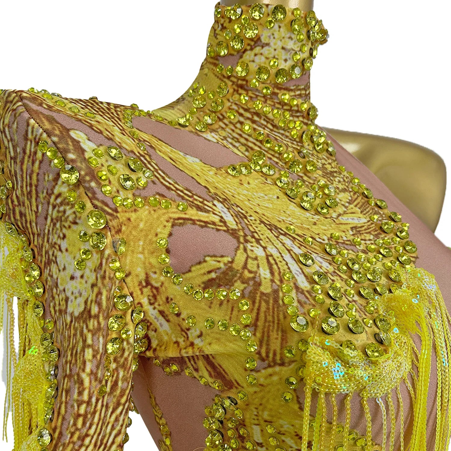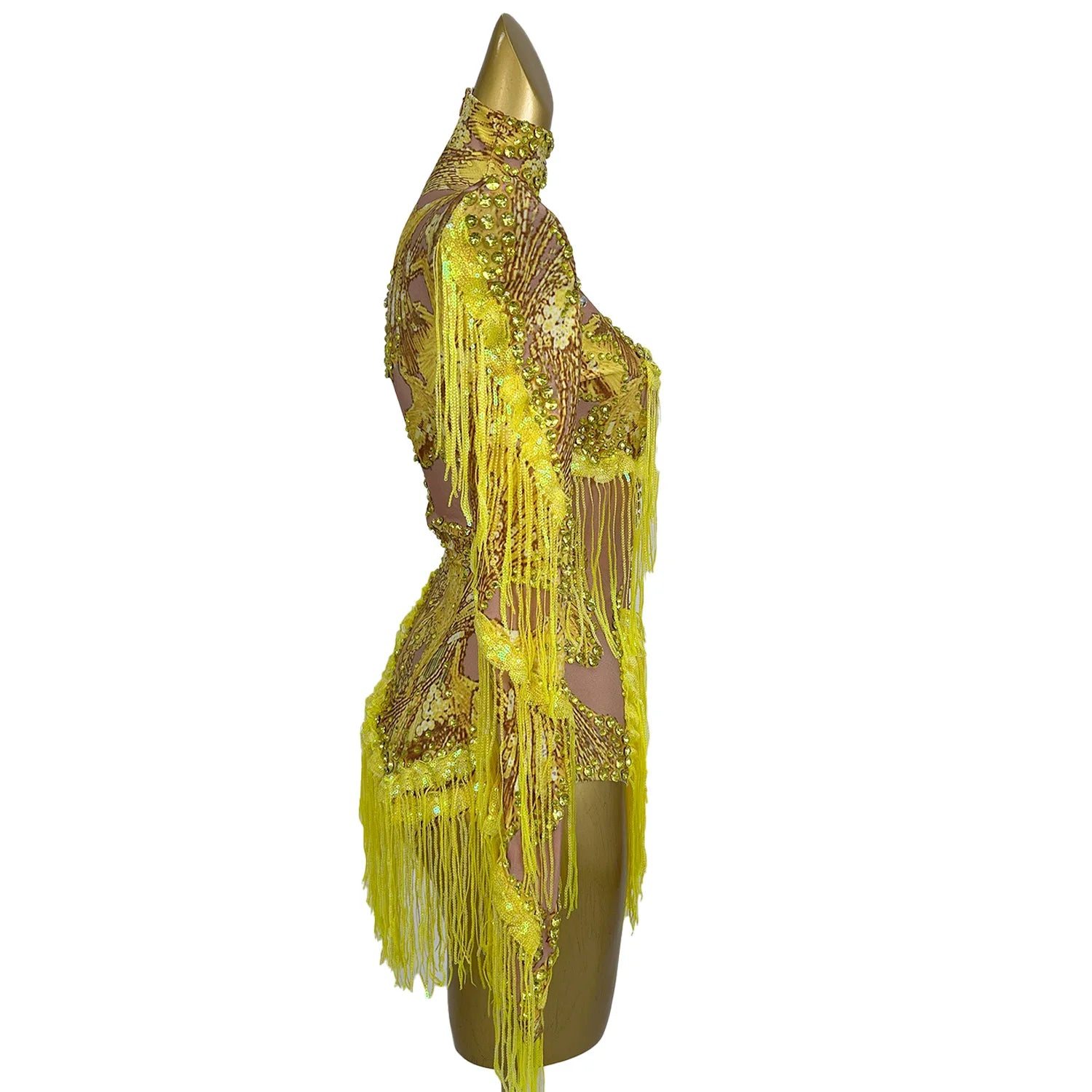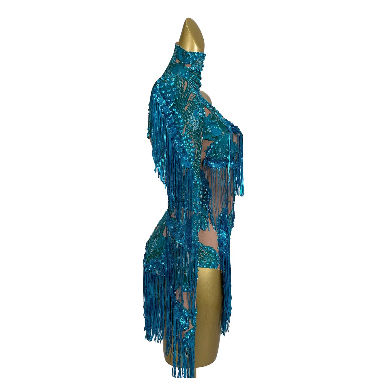 Body moulant à paillettes scintillantes et pompons pour femme, tenue de danse, justaucorps, tenue de scène, pour discothèque, bar