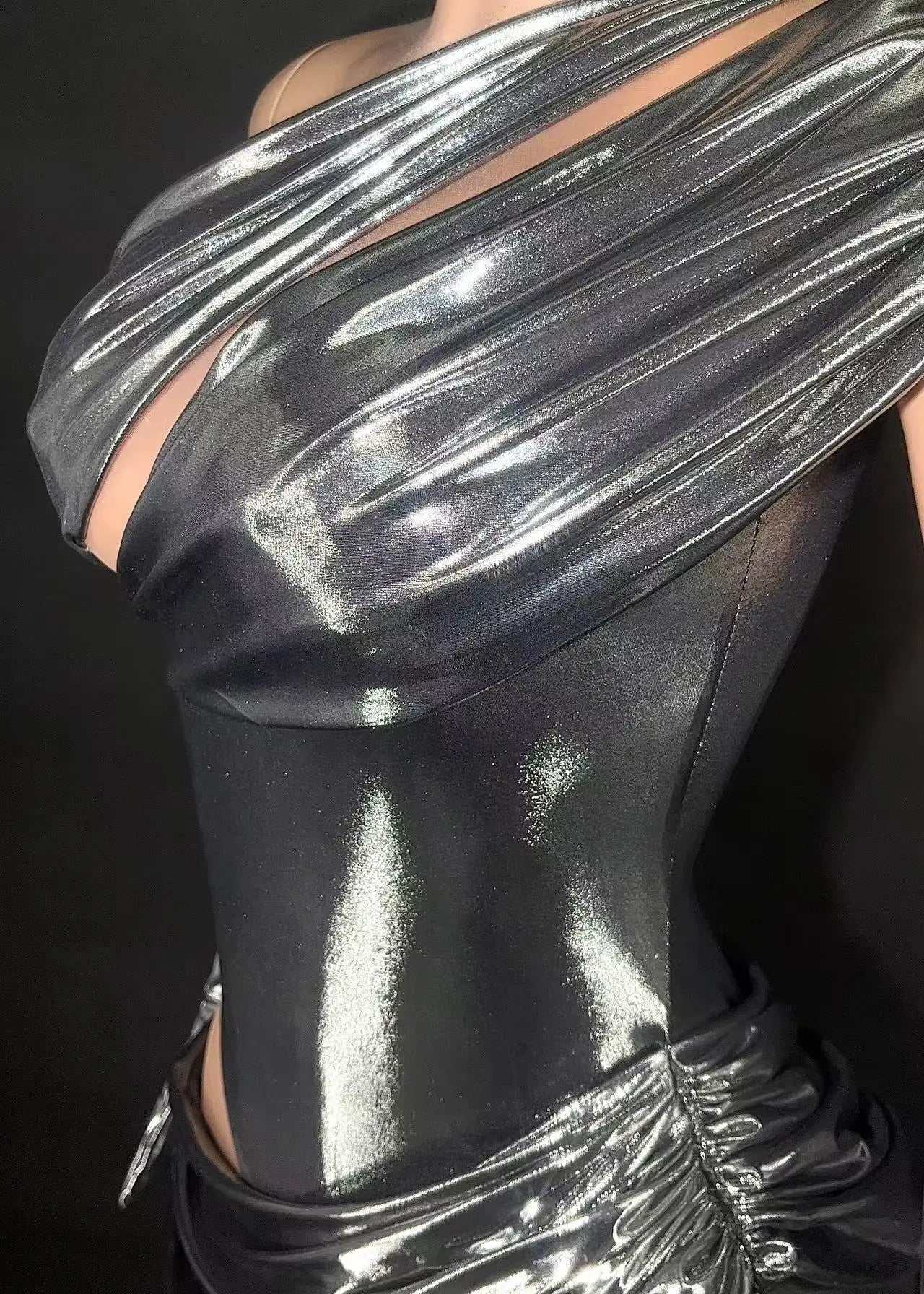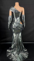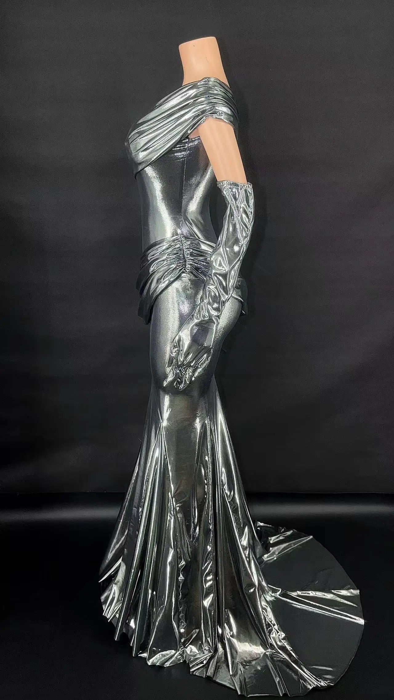 Brillez à chaque événement avec cette robe longue argentée éblouissante, ornée de détails miroirs réfléchissants pour un effet saisissant. Son design spectaculaire en queue de pie ajoute une touche d'élégance et de glamour, ce qui en fait le choix idéal pour les anniversaires, les spectacles en soirée ou les apparitions sur scène. Conçue avec une silhouette flatteuse pour les femmes qui aiment se démarquer, cette robe de danse scintillante capte toutes les lumières et vous garantit d'être le centre de l'attention. Idéale pour les chanteuses et les hôtesses en quête d'une tenue de soirée audacieuse et inoubliable.