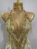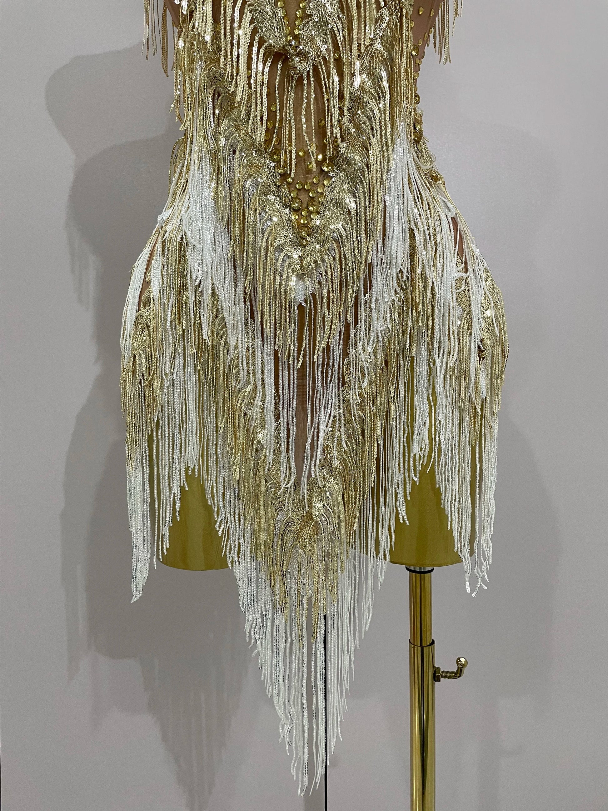 Éblouissez la foule avec cette mini-robe sexy pour femme, confectionnée en maille extensible et ornée de pampilles en strass scintillants. Idéale pour les soirées en boîte de nuit, les chanteurs, les danseurs, les spectacles ou les soirées glamour, cette tenue accrocheuse allie confort, élégance et style époustouflant.