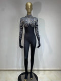 Sparkling Rhinestone Stretch Jumpsuit Women Sexy Club Party Wear Drag Queen Singer Dancer Stage Performance Costume
