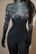 Turn heads with this sparkling rhinestone stretch jumpsuit—designed for women who love to shine on stage and at parties. The sexy, figure-hugging silhouette and brilliant rhinestones make it the perfect choice for club nights, drag queens, singers, dancers, and dazzling stage performances. Comfortably stretchy and eye-catching, this costume lets you command every spotlight and celebrate your boldest, most confident self.