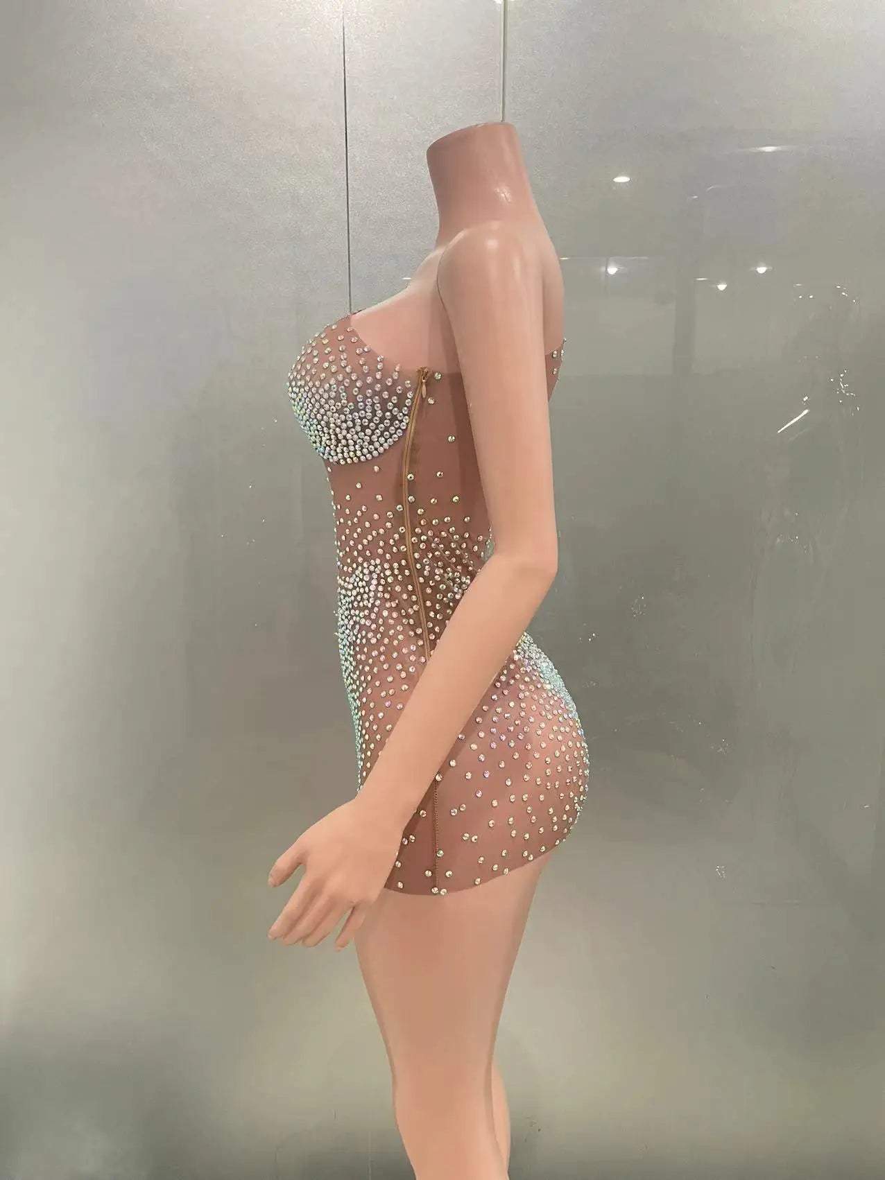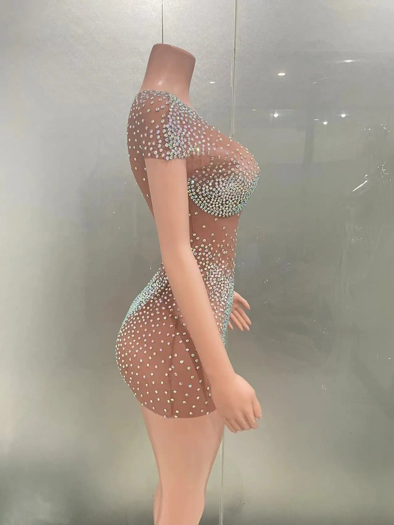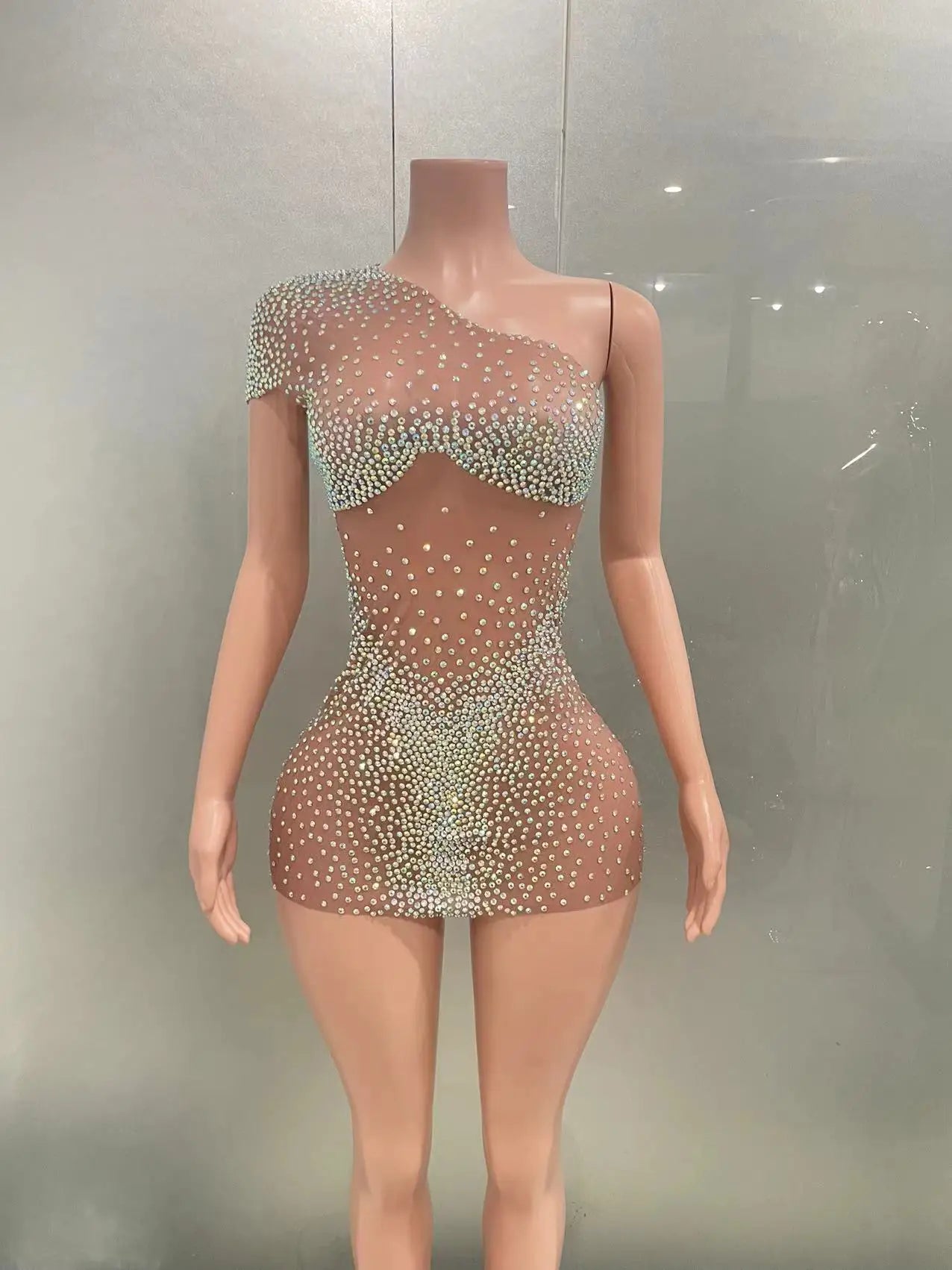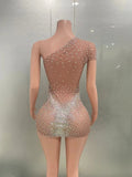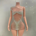 Celebrate in style with this sexy mini silver dress, perfect for women looking to make a bold statement at birthday parties or special events. Featuring dazzling crystals and rhinestones on sheer mesh, this glamorous outfit is ideal for club nights, dance performances, or stage appearances. Designed to catch the light and all eyes in the room, it’s a must-have for singers and performers who want to shine.