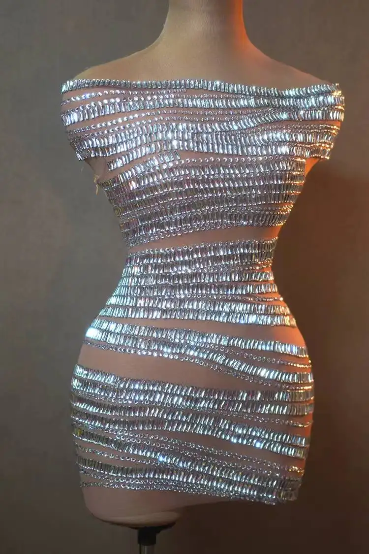 Robe de soirée à paillettes et diamants pour femme, épaules dénudées, style portefeuille, mini, tenue de ville, robe de bal à pierres scintillantes, Gangsuo