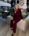 Costume d'été bordeaux pour mère de la mariée, coupe slim, col en V, pantalon large, pour femme de bureau, bal, fête, mariage (veste + pantalon)