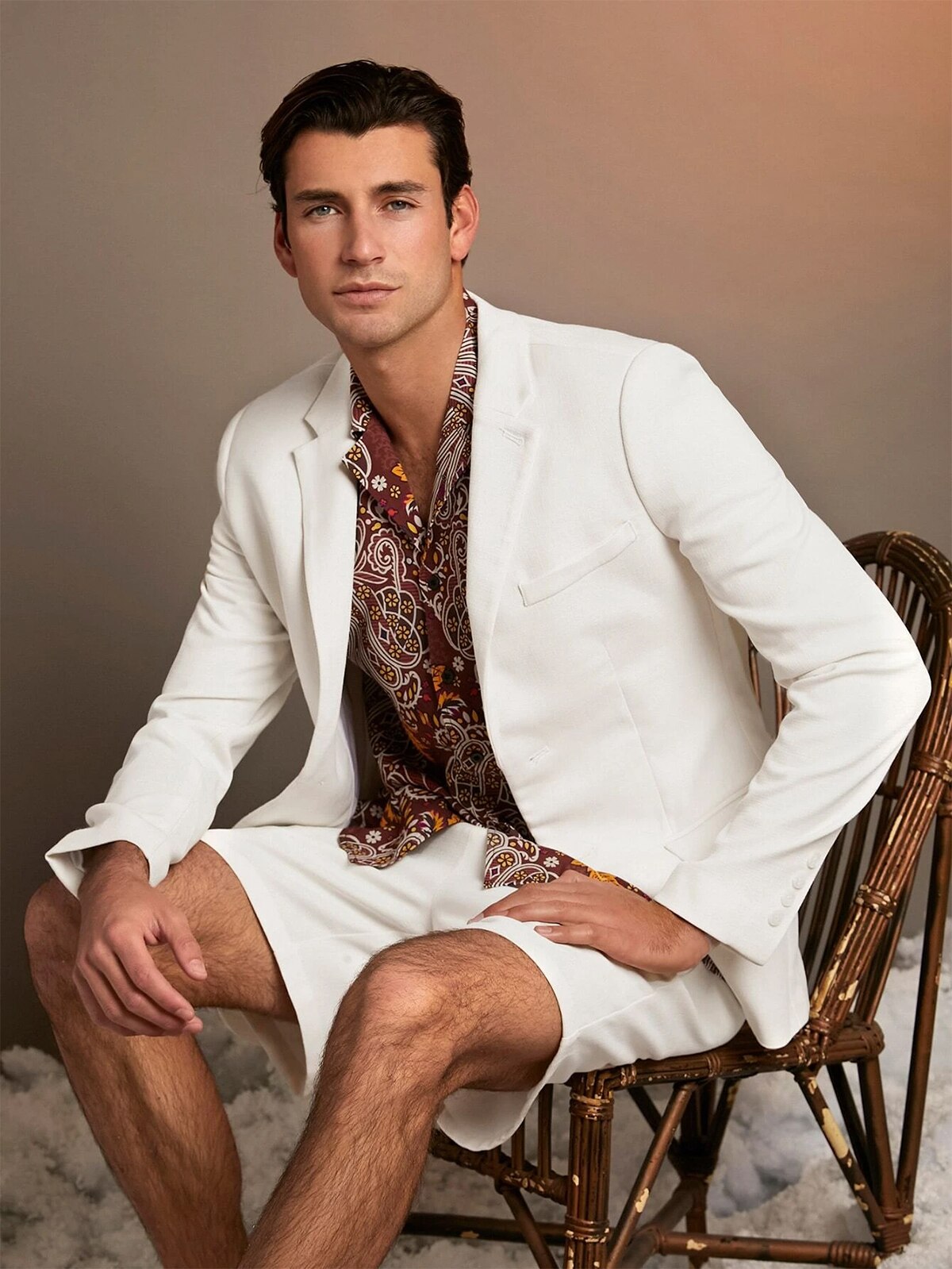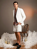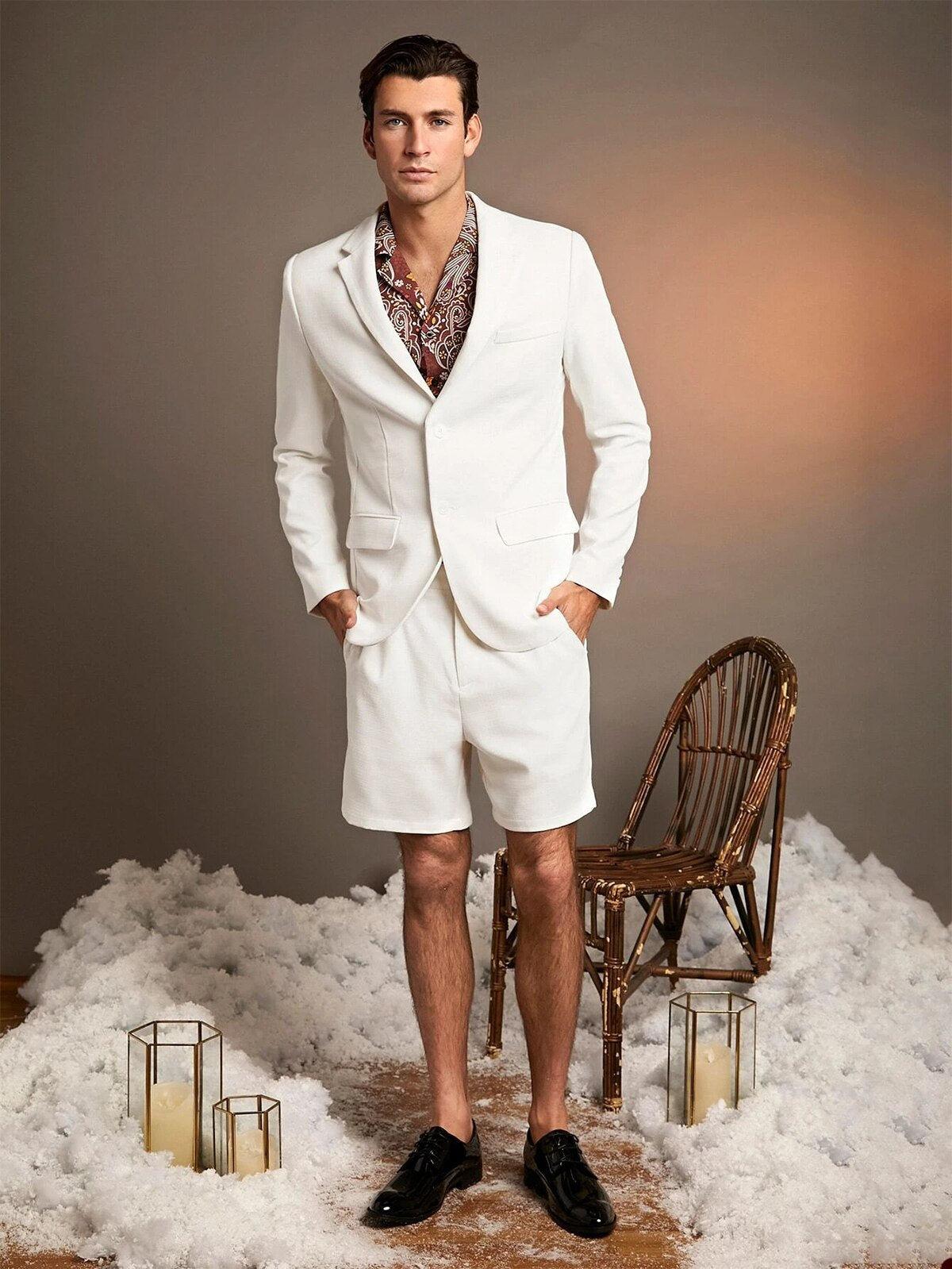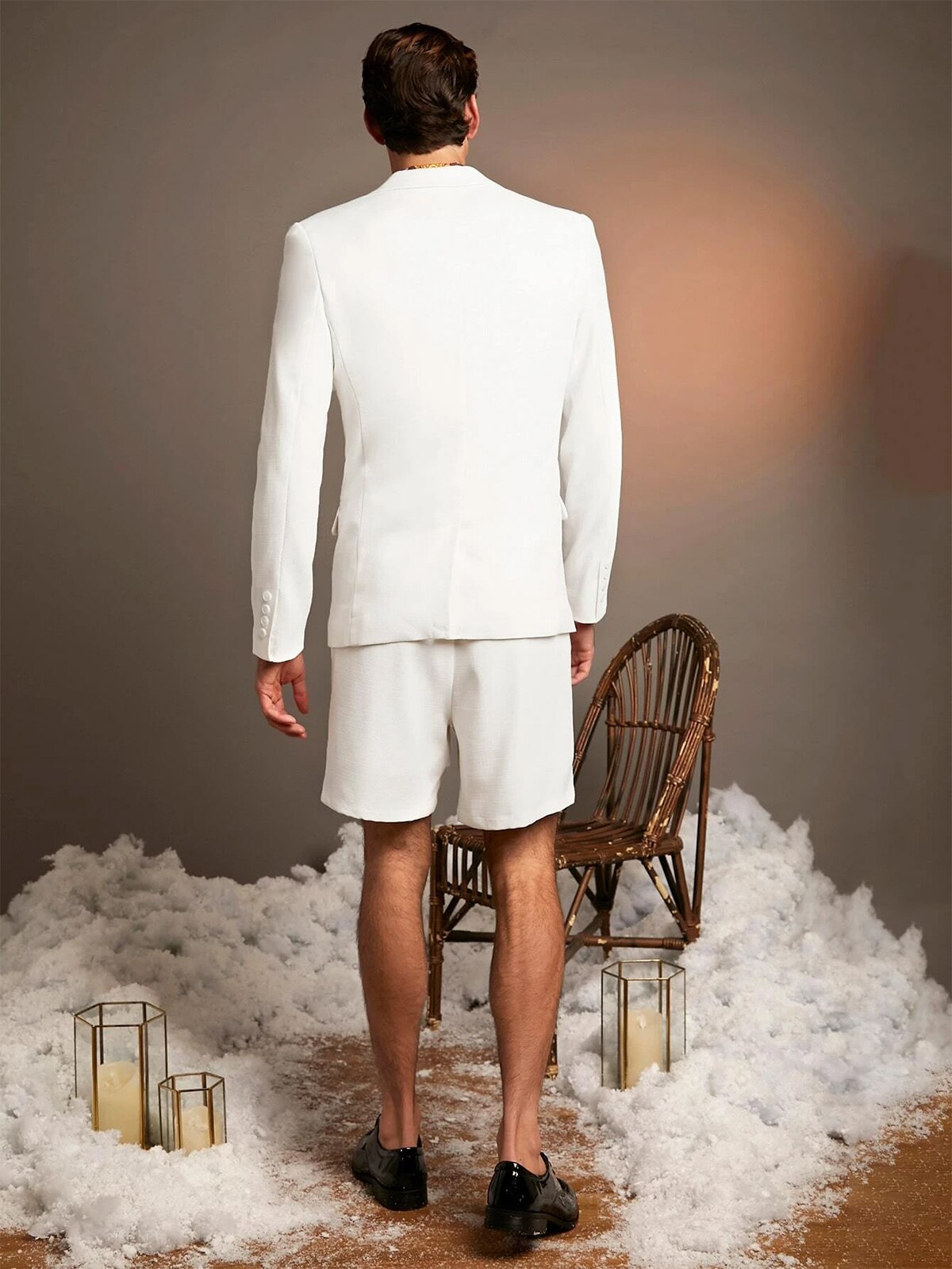 Smoking d'été court pour homme, ensemble 2 pièces, coupe ajustée, revers cranté, pour marié, soirée, bal de promo, tenue d'affaires