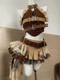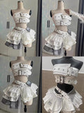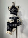 Adoptez le style rétro-chic avec cet ensemble deux pièces d'été d'inspiration vintage pour femme. Il se compose d'un haut court bustier d'inspiration punk gothique associé à une jupe taille haute à volants, alliant élégance des années 2000 et style audacieux. Idéal pour les fêtes et les occasions spéciales, cet ensemble accrocheur vous offre un look unique qui se démarquera où que vous alliez.