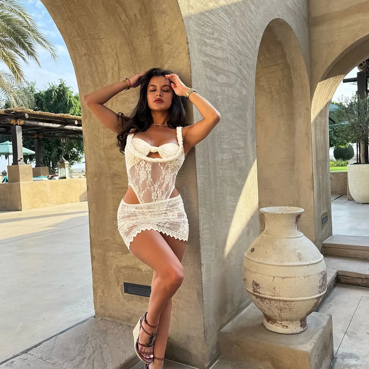 Embrace summer in style with this elegant women’s swimsuit featuring a matching skirt. Designed with delicate lace details and a flattering high-leg cut, this bathing suit offers a perfect blend of femininity and confidence. The included skirt adds a chic, versatile touch—ideal for transitioning from poolside to beach strolls. Comfortable, supportive, and figure-enhancing, this swimwear set makes every beach or pool day extra special. Shine with effortless charm in this must-have summer biquini!
