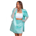 Robe blazer au design unique, vert menthe, manches longues, tenue de soirée formelle, de mariage (veste + jupe)