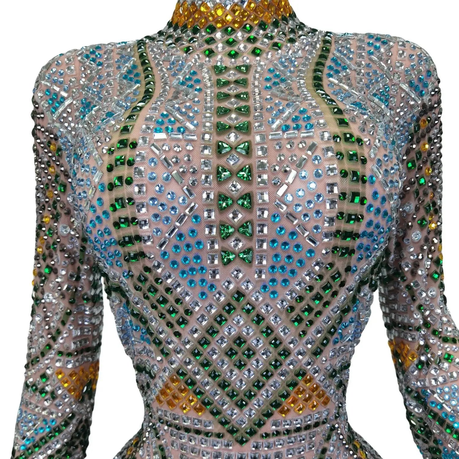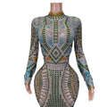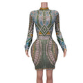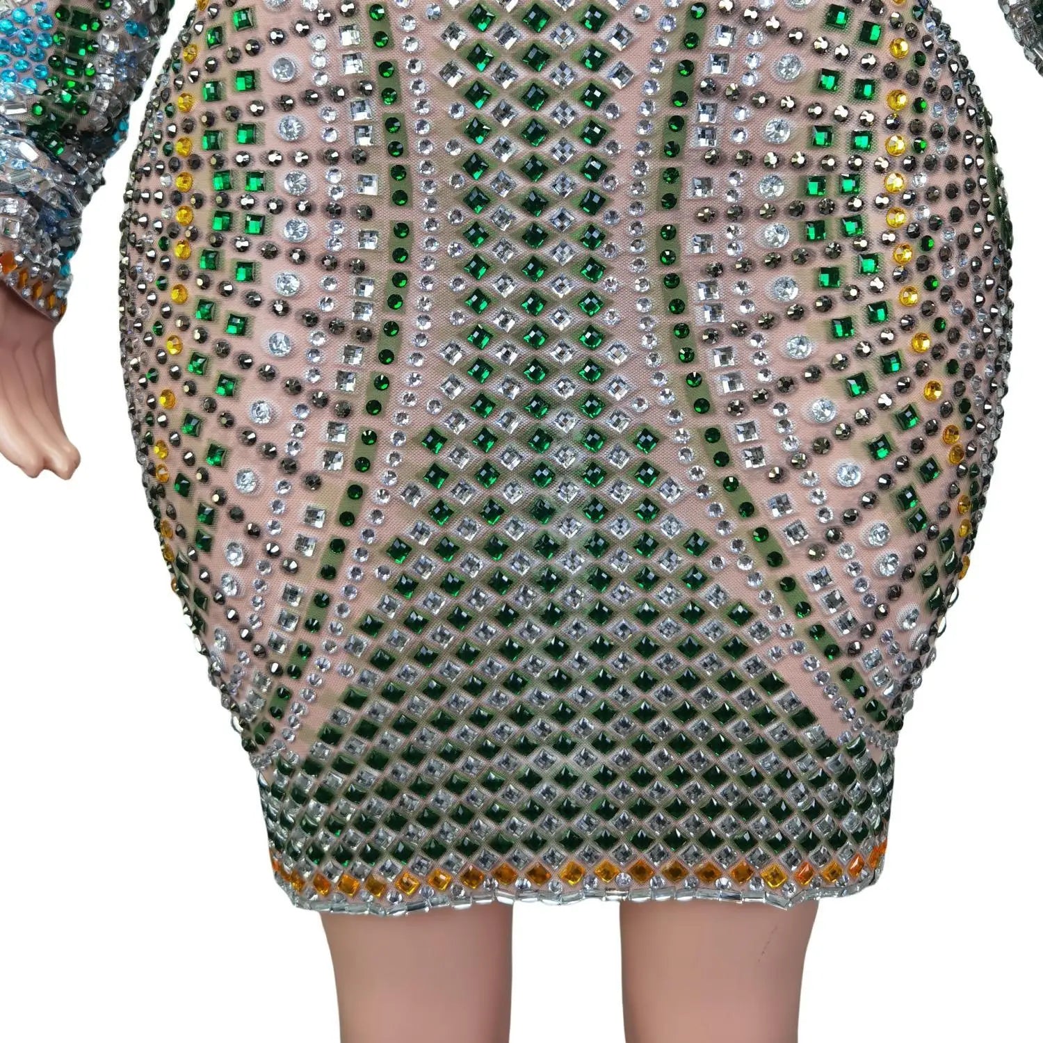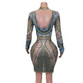 Robe de cocktail moulante à manches longues ornée de cristaux pour des soirées glamour
