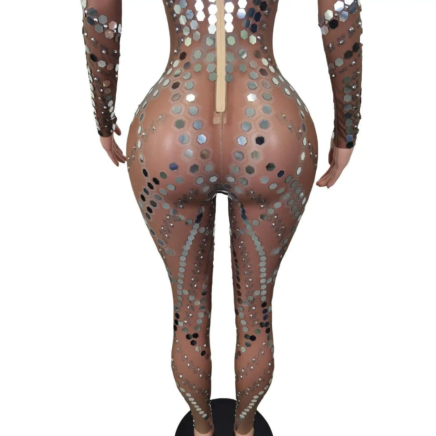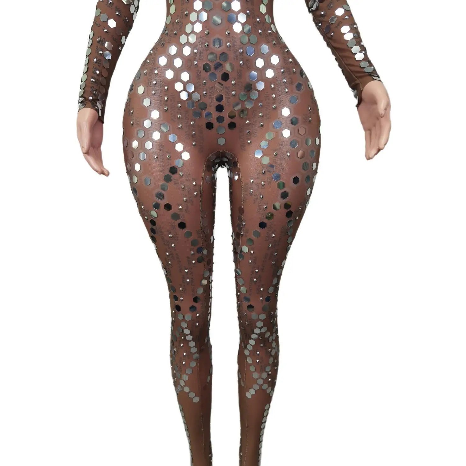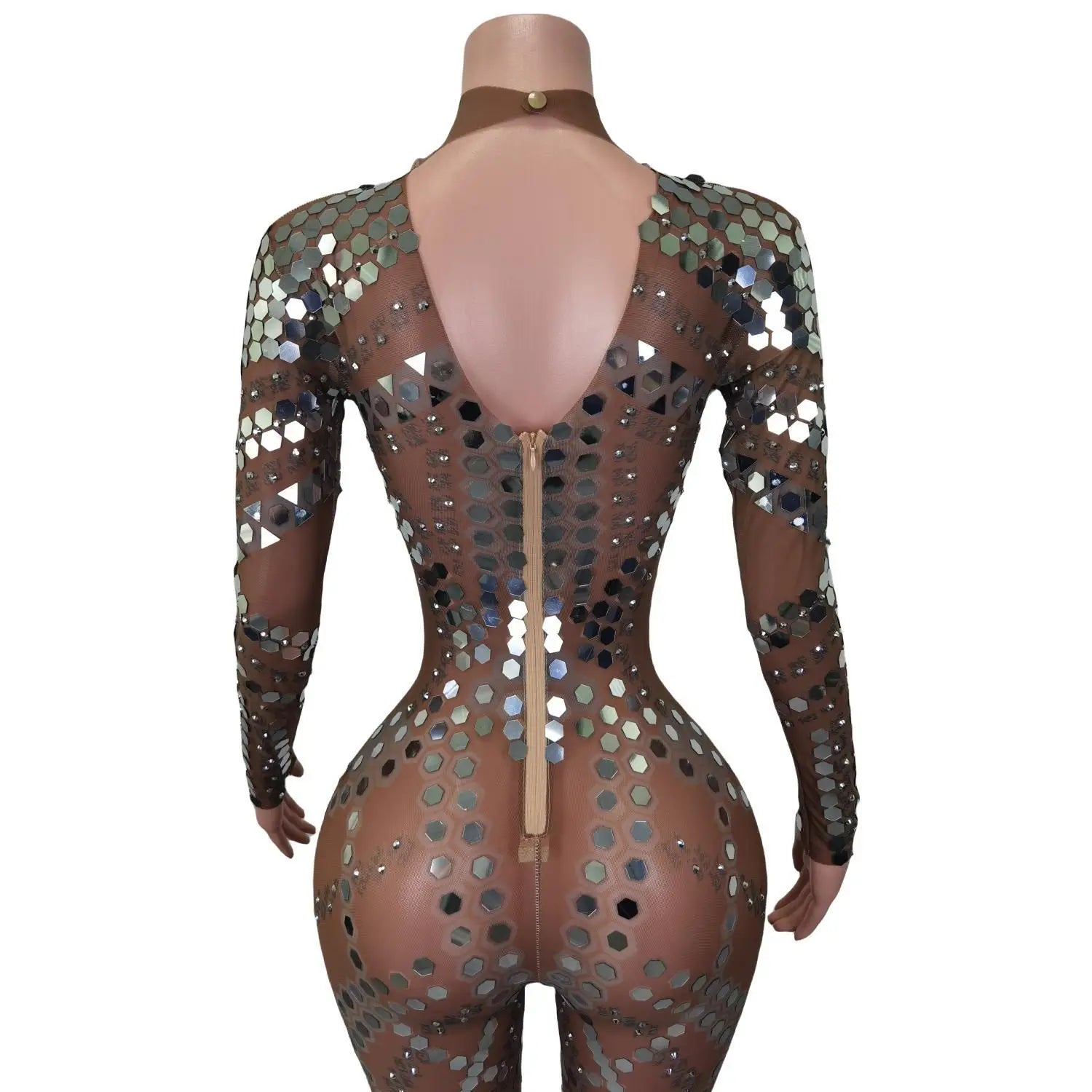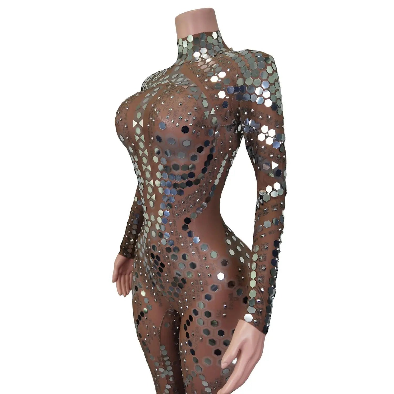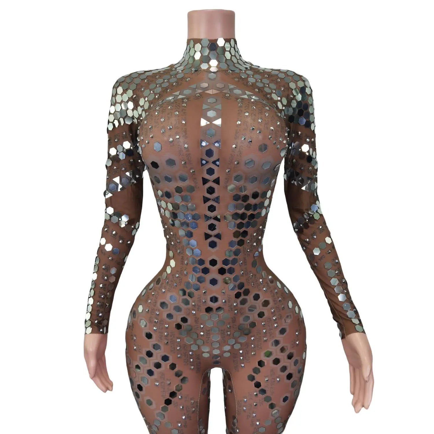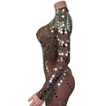 Robes Mode Manches Longues Paillettes Combinaisons Sexy Fête D'anniversaire Une Pièce Body Festival Tenue Danse Scène Spectacle Costume