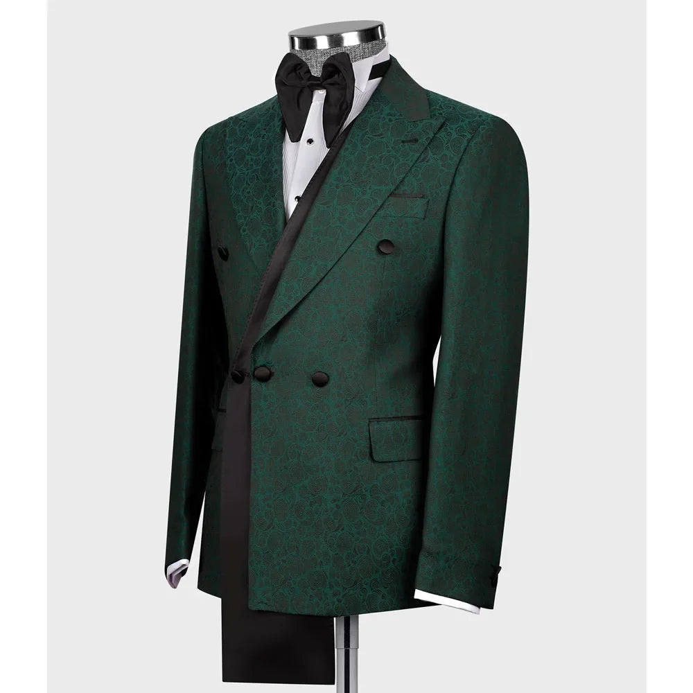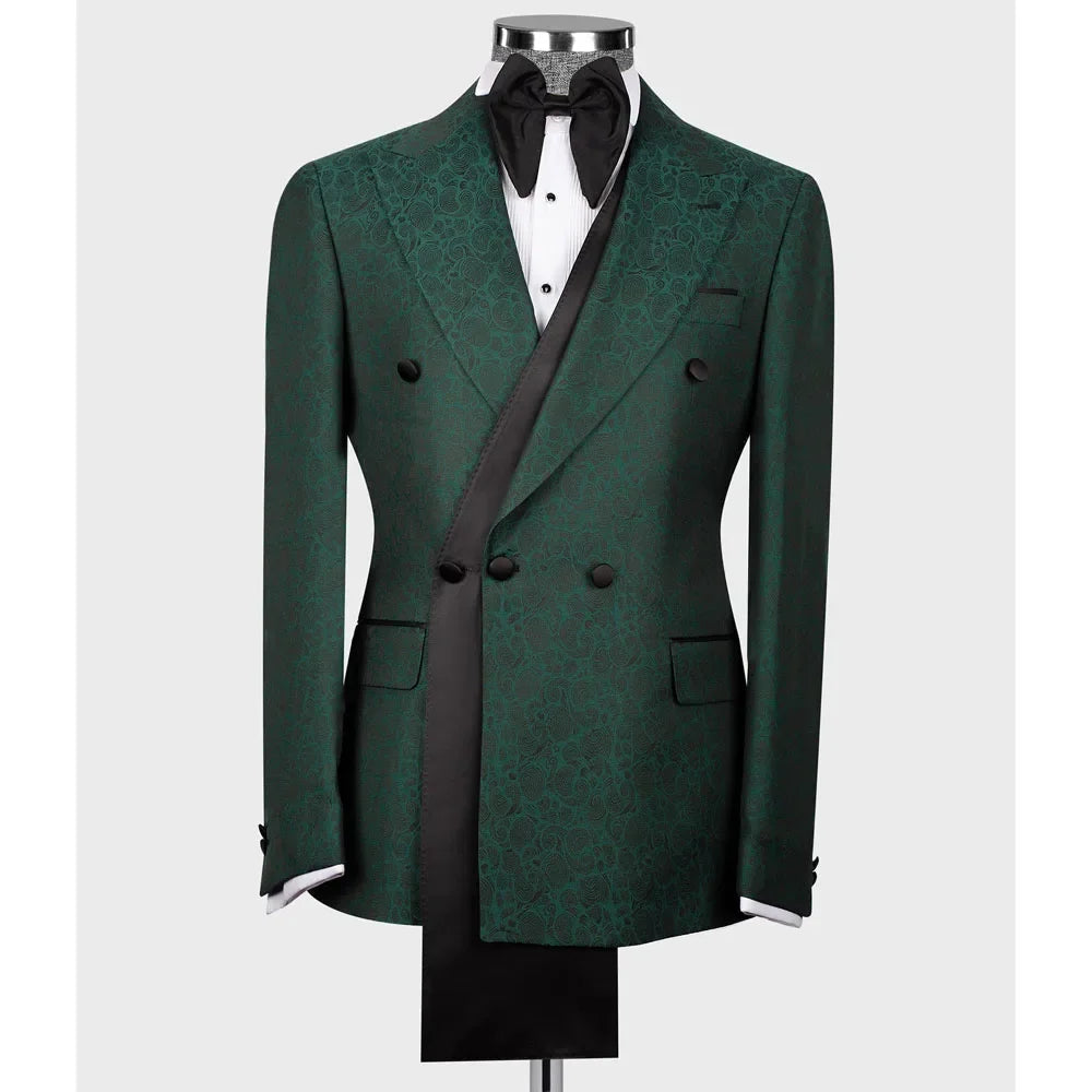 Vintage Men Suits Tailor-Made One Piece Coat Jacquard Peaked Lapel Blazer Casual Double Breasted Groom Customized Only Jacket