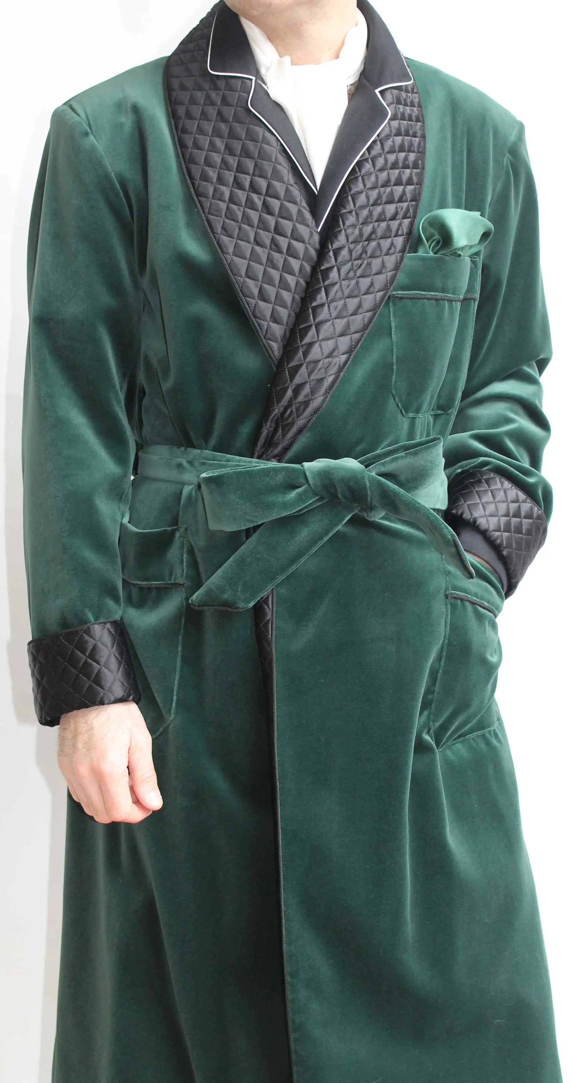 Elevate formal evenings and lounge occasions with this Vintage Men Velvet Smoking Suit — a luxurious, custom-made tuxedo jacket-robe that blends old-world charm with contemporary tailoring. Designed for the gentleman who appreciates texture, silhouette, and sartorial presence, this piece pairs a plush velvet exterior with a refined shawl lapel and a coordinating belt for a versatile robe-style finish.