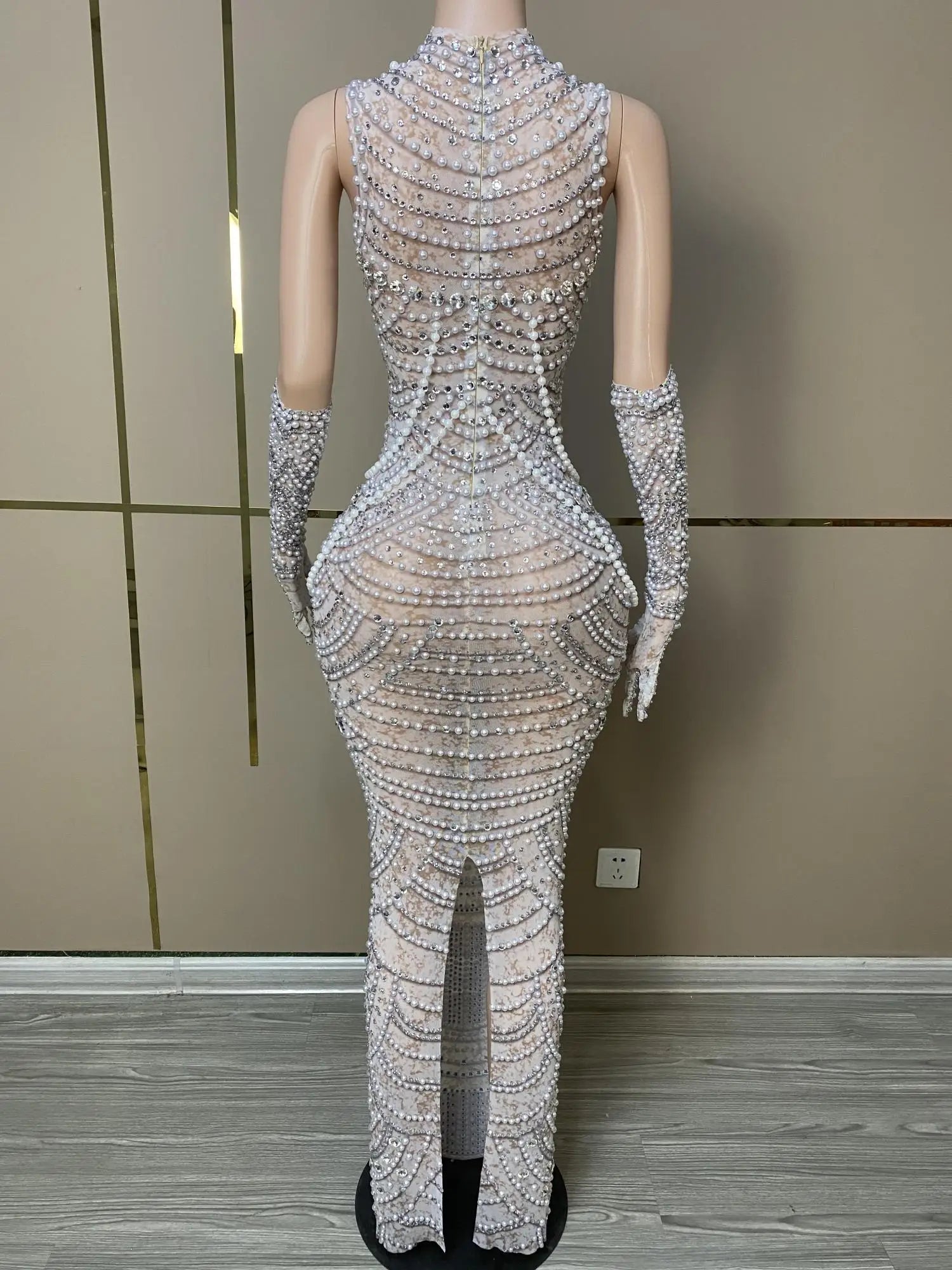 Make your wedding day unforgettable with this Vintage Sexy Long Wedding Dress, thoughtfully designed for African women who want a timeless, elegant bridal look with modern allure. This sleeveless gown features delicate pearl embellishments, a flattering long silhouette, and matching gloves to complete a cohesive, couture-inspired wedding ensemble.