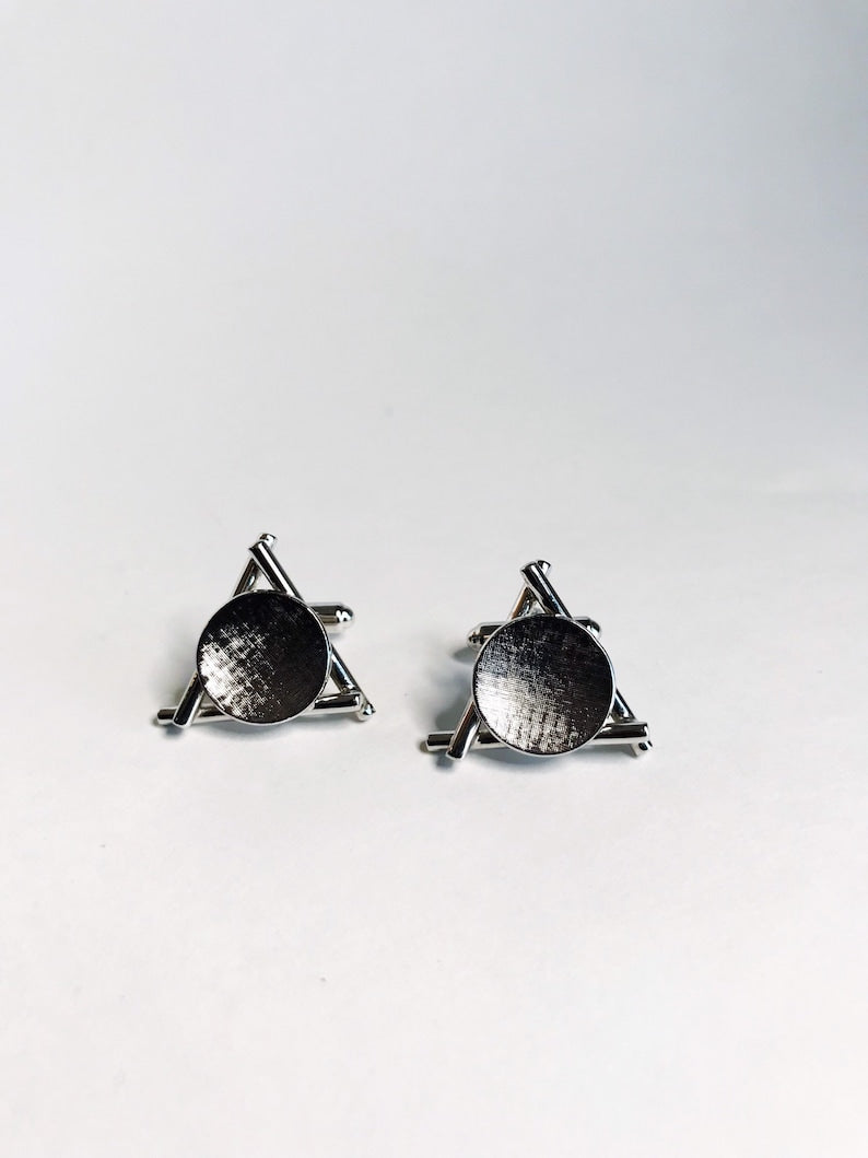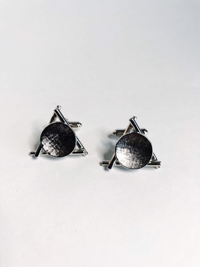 Boutons de manchette triangulaires argentés vintage des années 80, boutons de manchette ronds pour hommes, boutons de manchette géométriques pour mariage, boutons de manchette des années 1980
