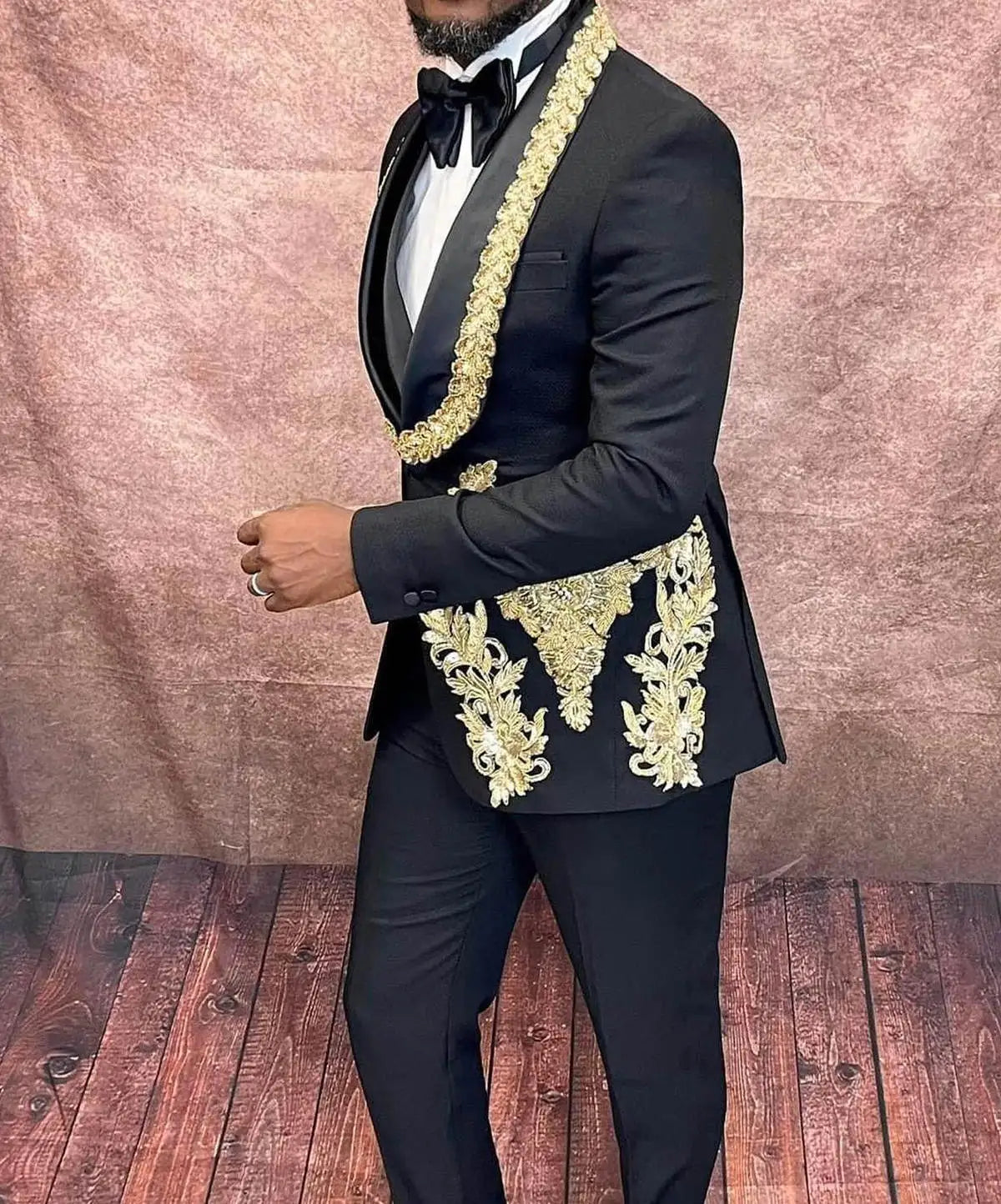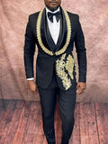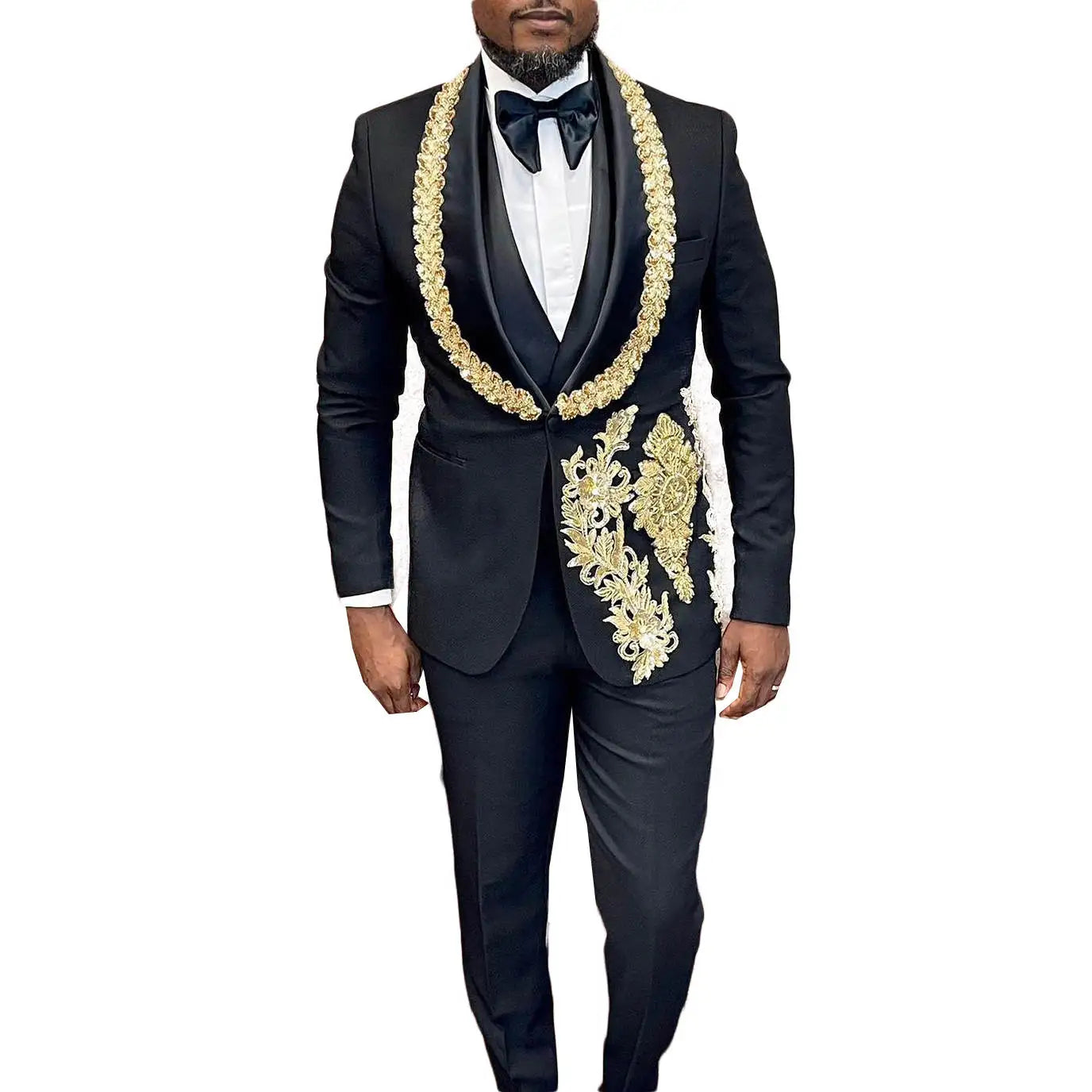 Make a grand, camera-ready entrance with this Wedding Men Suits 3-piece set—an opulent, tailor-made tuxedo designed for grooms, celebrity appearances, red-carpet events, and anyone who wants show-stopping elegance. This ensemble pairs a shimmering, rhinestone- or bead-accented shawl lapel blazer with a coordinating vest and tailored pants for a cohesive, couture-inspired look.