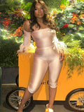 New Women's Sexy Off-the-shoulder Wrap Top, Slim-fit Hip-hugging Shorts Suit