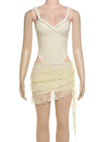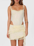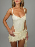 Weird Puss Jacquard Elegant 2 Piece Women Low-Neck Sleeveless Bodysuits+Ruched See Through Tassel Skirts Beach Party Trend Suits