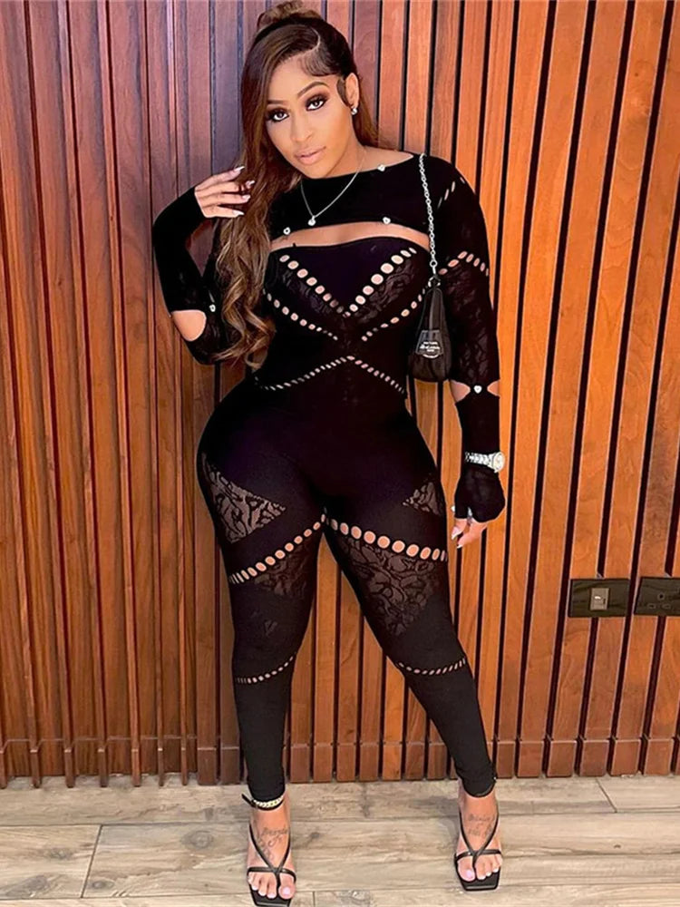 Combinaison moulante et sexy pour femme, avec strass, ajourée, élastique, tenue de soirée, idéale pour le fitness ou l'entraînement