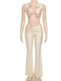 Ensemble 2 pièces à plis métalliques pour femme, débardeur ajouré et moulant chic Y2K + pantalon froncé, tendance féminine, tenues assorties de rue sexy