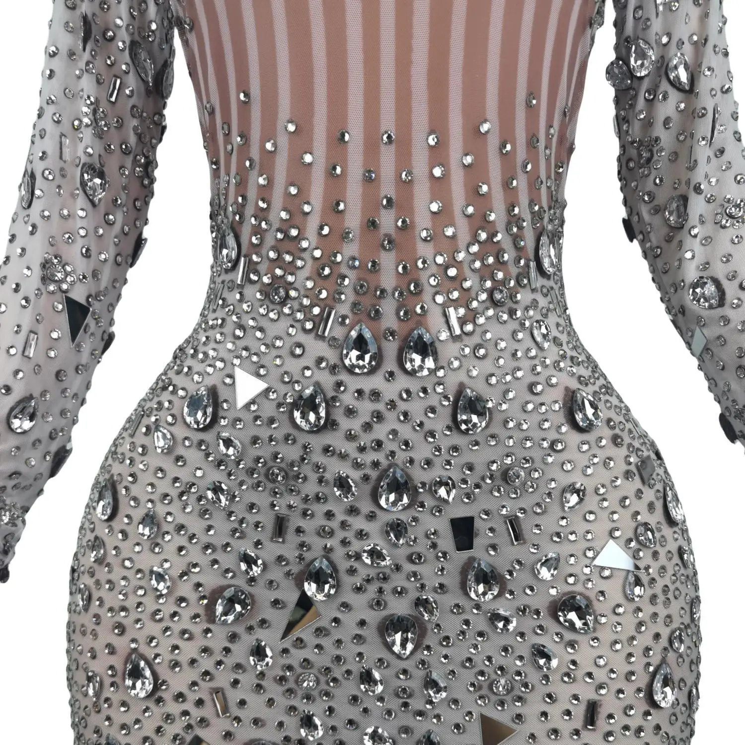 Robe moulante en maille ornée de strass brillants pour femme, idéale pour les anniversaires, les fêtes et les représentations sur scène