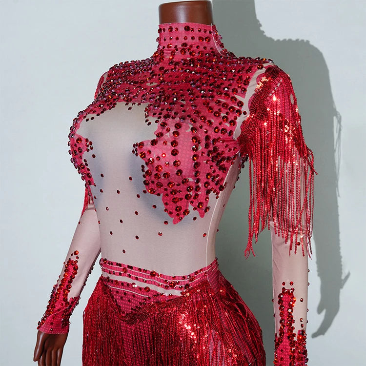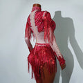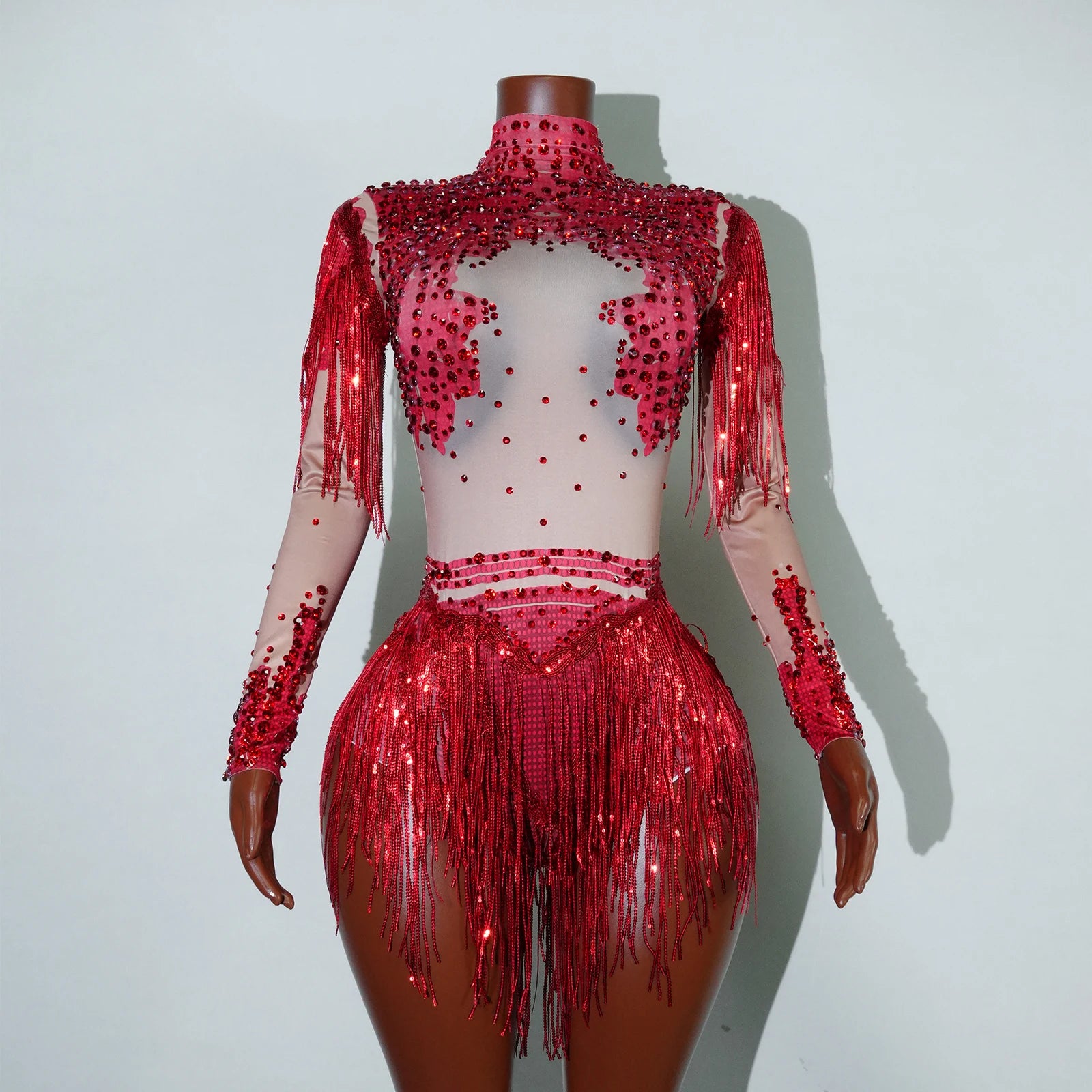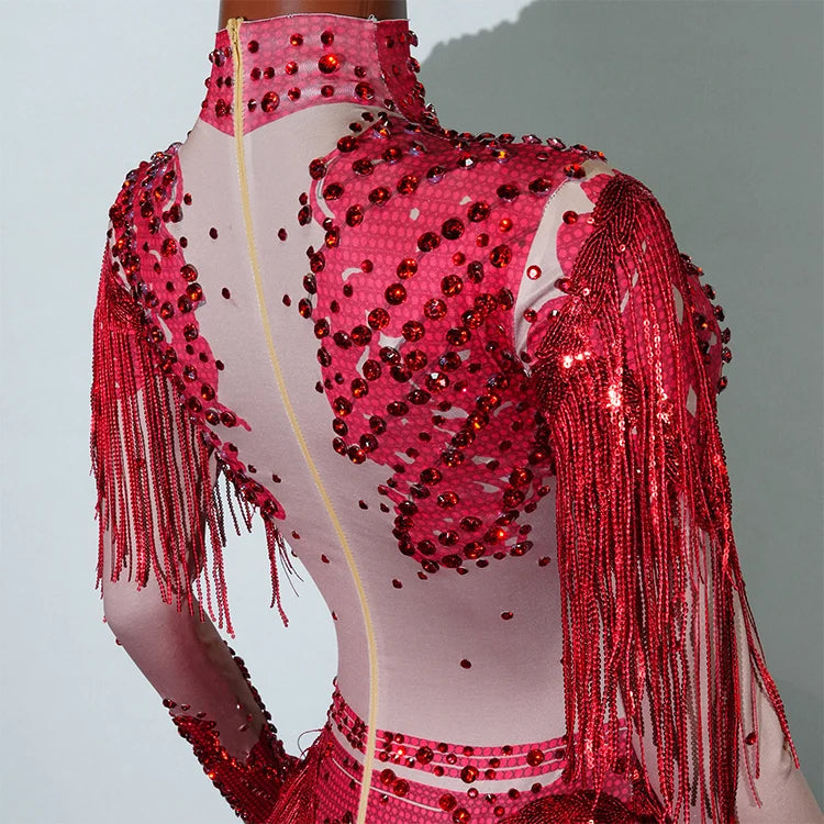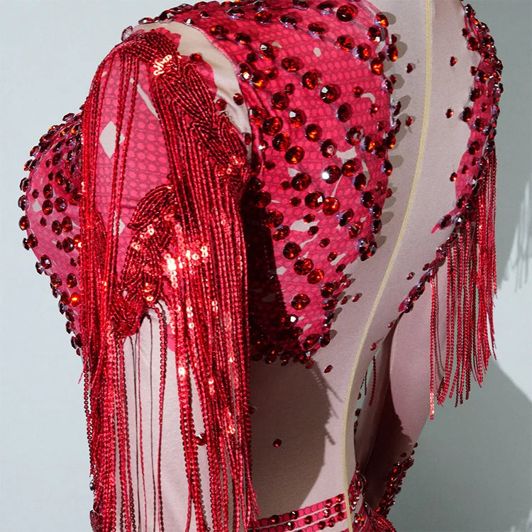Sublimez votre performance avec cet élégant body blanc à pampilles et perles, conçu pour briller sur la piste de danse ou sur scène. Orné de perles luxueuses et de franges fluides, ce justaucorps allie sophistication et style époustouflant. Idéal pour les soirées en boîte de nuit, les concerts, les chanteurs ou les artistes drag queens, ce costume exceptionnel vous permettra d'attirer l'attention et d'insuffler confiance à chaque apparition.