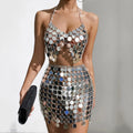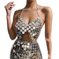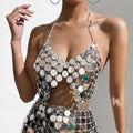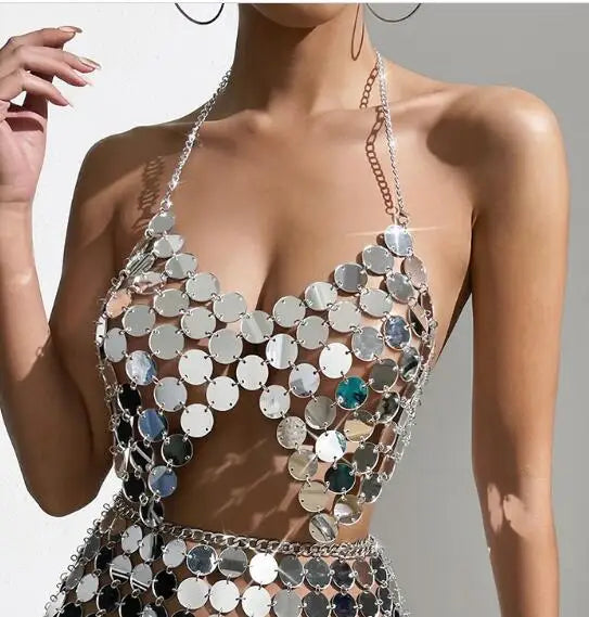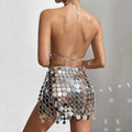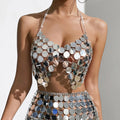 Women Sequin Chain Metal Tops Carnival Backless Metallic Hollow Adjustable Reflective Nightclub Top for Women Топ