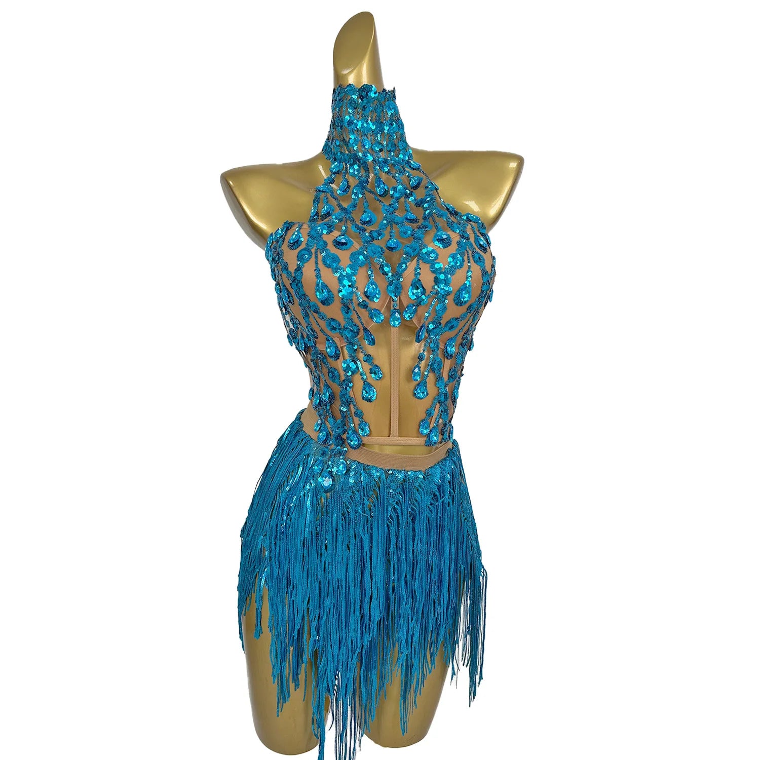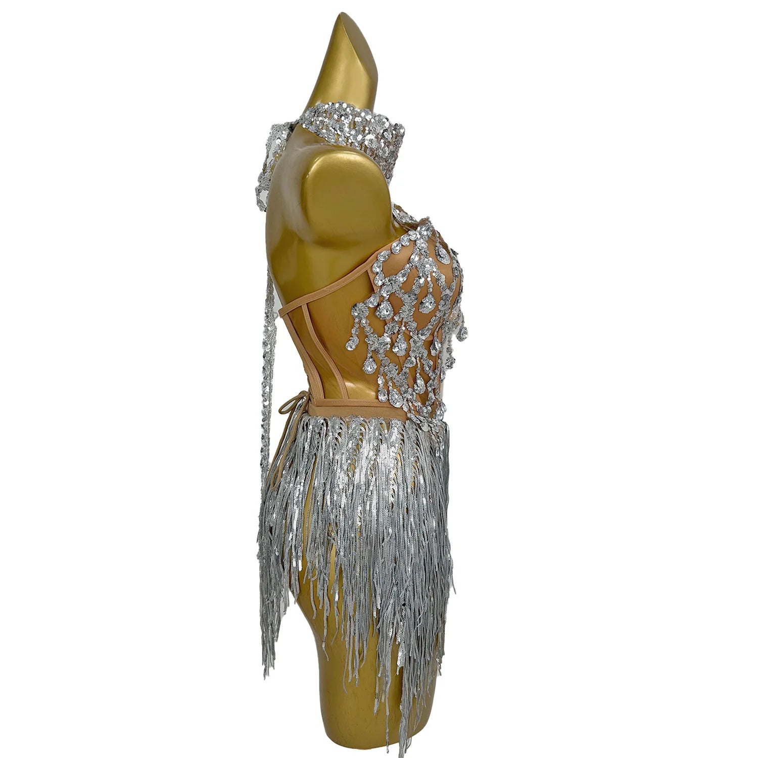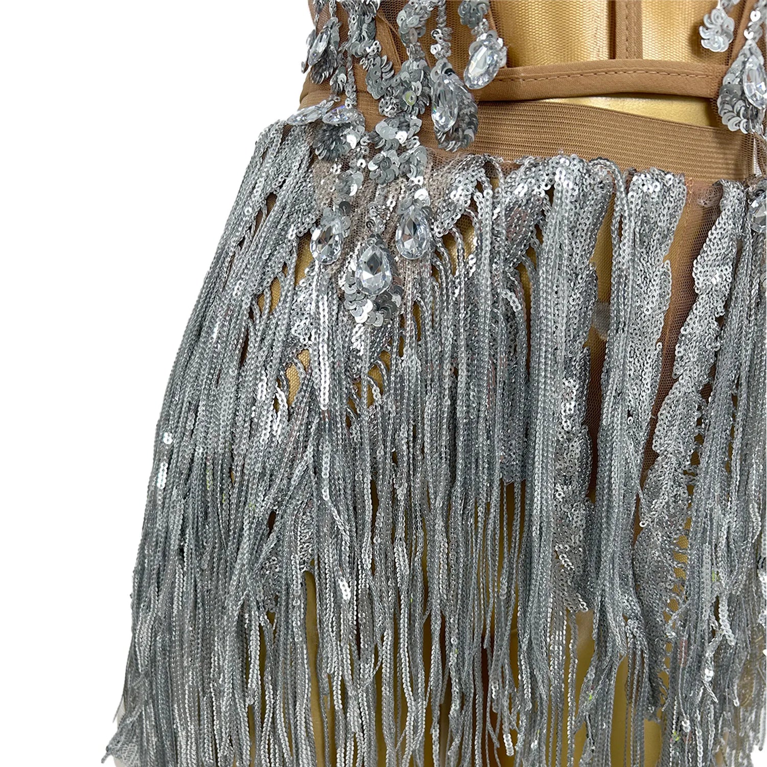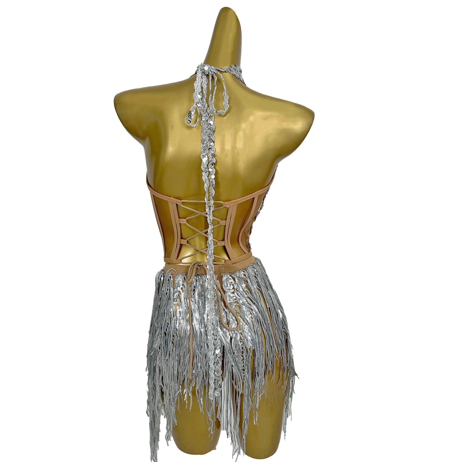 Women Sexy Singer Dancer Performance Costume Nightclub Bar Girl Sparkly Diamond Tassel 2 Piece Set Evening Party Outfit