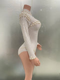 Faites tourner les têtes avec cette combinaison blanche sexy à perles, dotée de manches longues et d'une coupe moulante et élastique. Parfaite pour les soirées en boîte, les fêtes ou les représentations sur scène, cette tenue élégante brille sous les projecteurs ; elle est idéale pour les DJ, chanteuses et artistes qui souhaitent affirmer leur style.