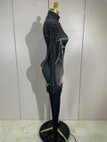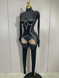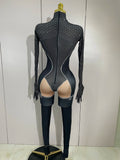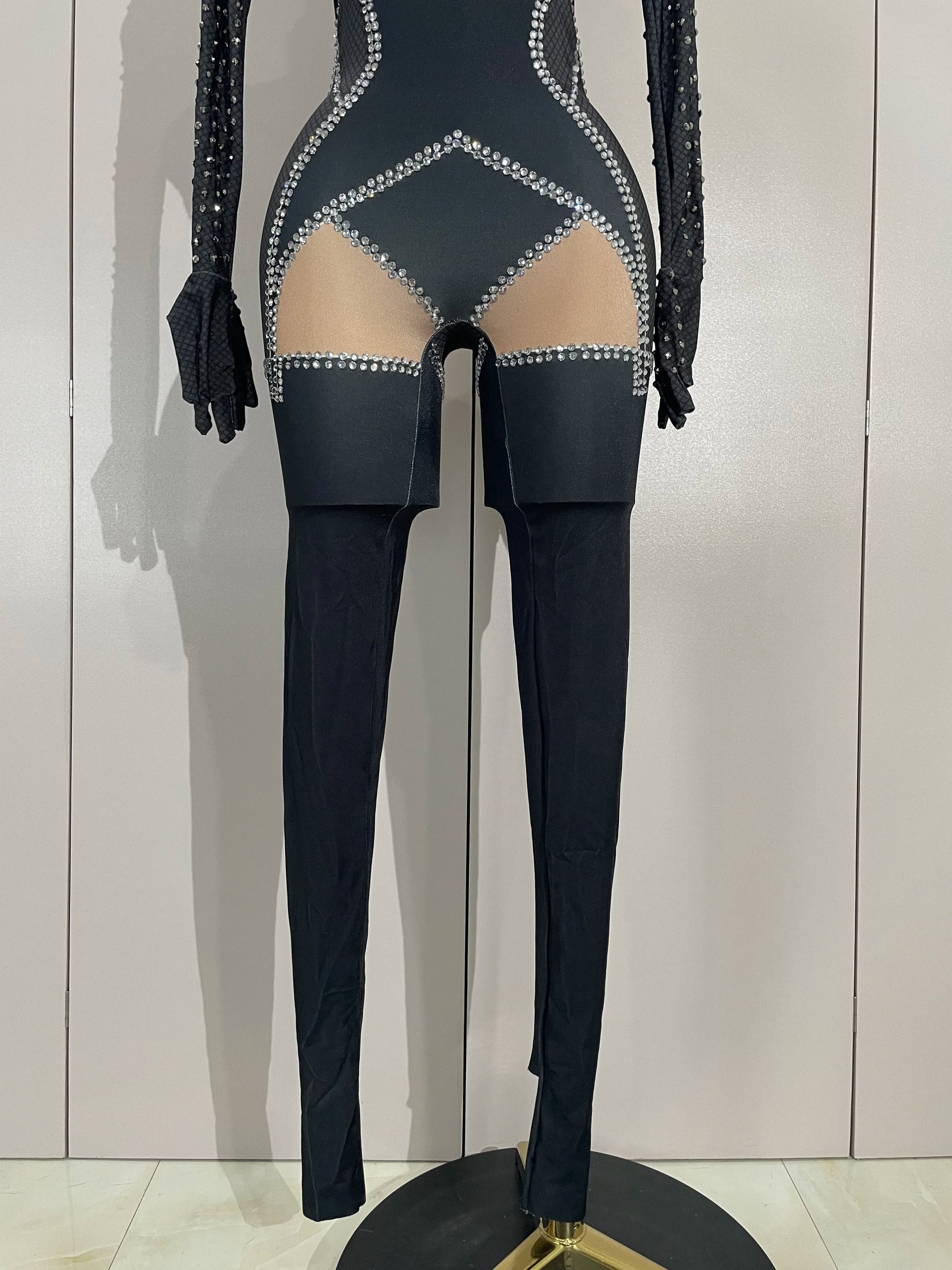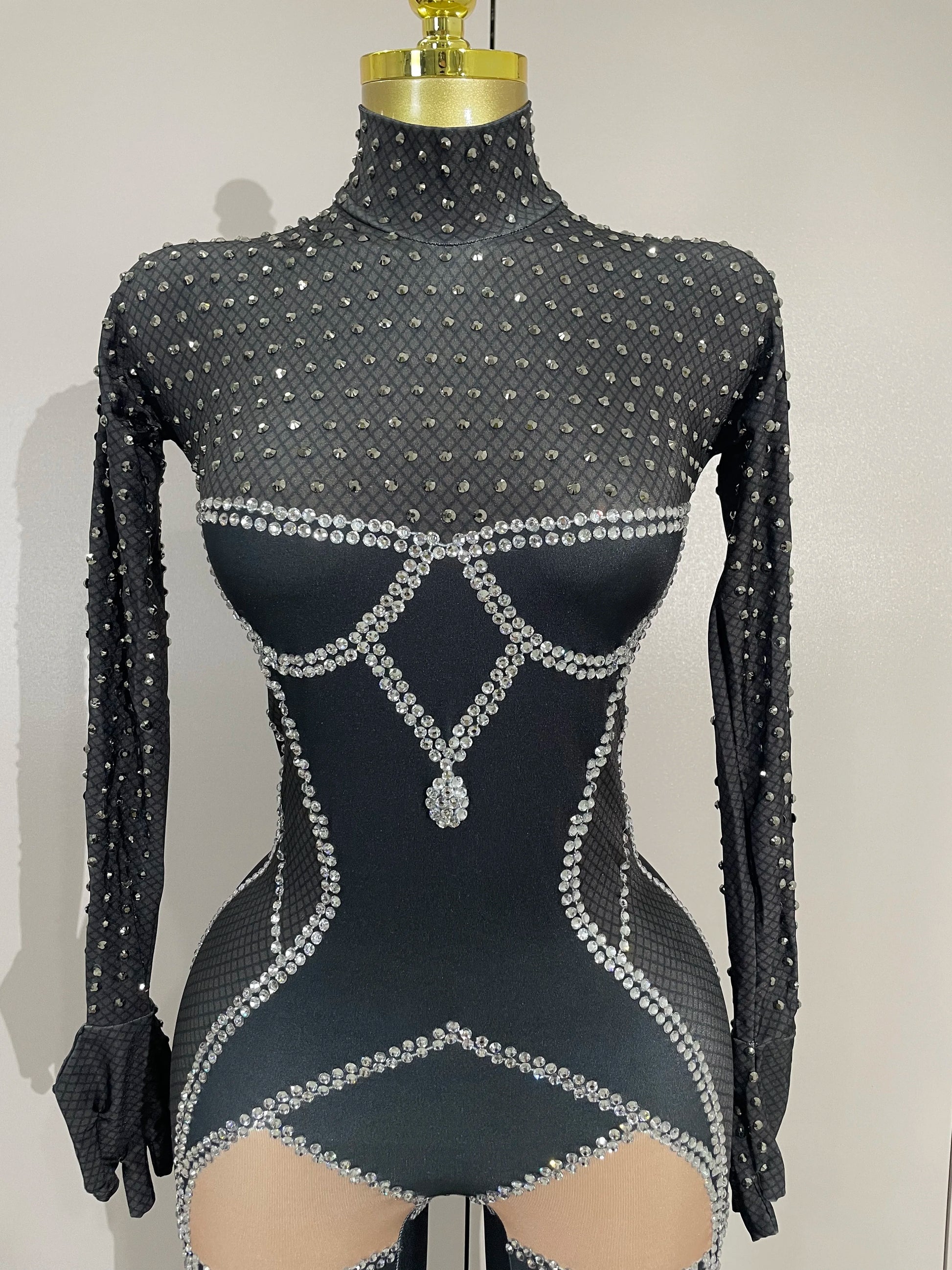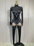 Women Sparkly Diamond Sexy Long Sleeves Jumpsuit Nightclub Bar Party Show Gogo Dancer Clothing Drag Queen Outfit Stage Costume