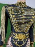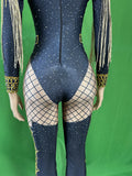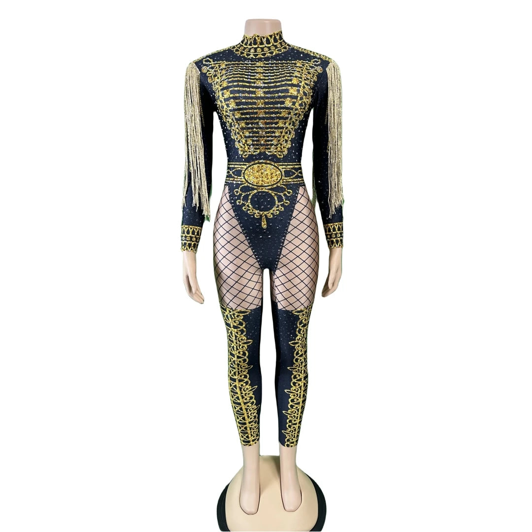 Combinaisons de danse extensibles pour femmes, à franges et strass, pour discothèque, chanteuse, drag queen, showgirl, nouveauté