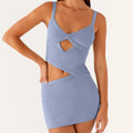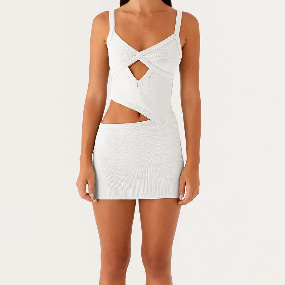 Women Summer Sexy Y2k Coquette Cutout Mini Dress Spaghetti Strap Backless V-Neck Patchwork Bodycon Party Cocktail Short Dress