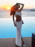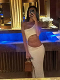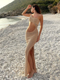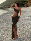 Women Y2k Knit Wrap Beach Maxi Dress Cut Out Beachwear Cover Up Sexy One Shoulder Crochet Bodycon Dress Party Club Outfit