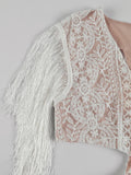 Ensemble mini-jupe sexy à pompons pour femme, robe blanche sans taille, robe de soirée, tendance été, nouveauté
