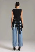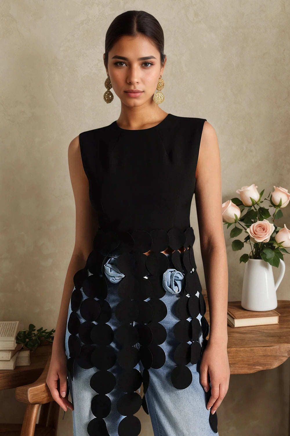 Add a chic touch to your summer wardrobe with this women's sleeveless black tank top, featuring a unique circular round neckline for standout style. Perfect for casual outings or streetwear-inspired looks, this top combines comfort with bold Y2K fashion vibes. Pair it with jeans, skirts, or shorts for an effortlessly cool and versatile outfit all season long.