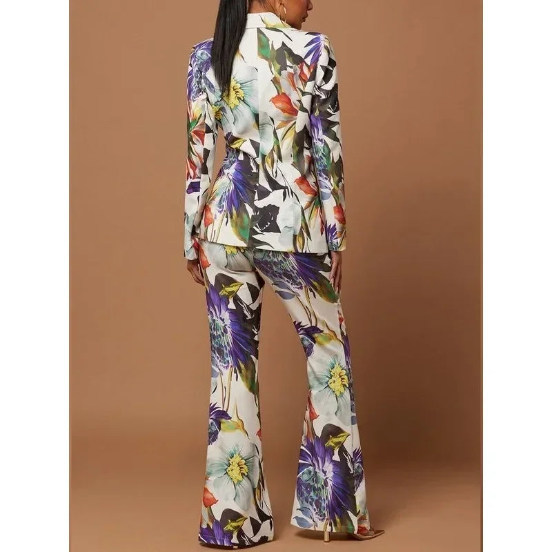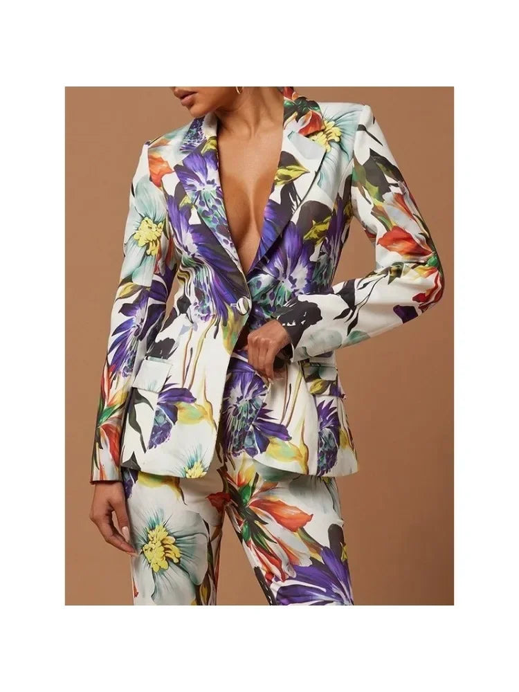 Female Lapel Blazer Suit Jackets New Fashion Floral Printed Long Sleeve Single-button Casual Outerwears