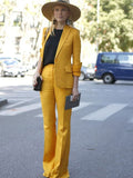 Ensemble pantalon et veste en lin jaune pour femme, tenue de soirée, de soirée, de mariage, de mère de la mariée, 2 pièces
