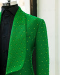 2 Pieces Beadings Diamonds Green Men Suits Wide Lapel Tuxedo Slim Wedding Groom Prom Formal Work Wear Plus Size Costume Homme