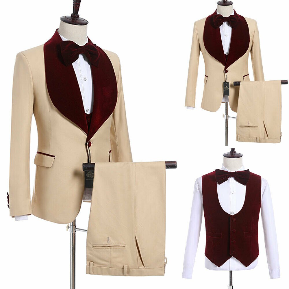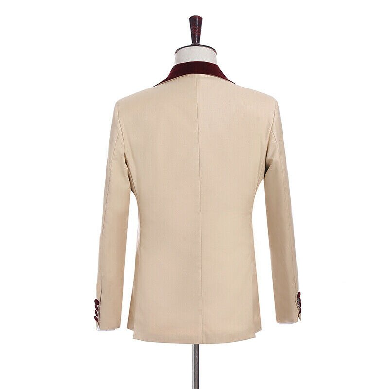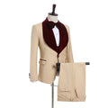 Khaki Groomsmen Burgundy Shawl Lapel Groom Tuxedos Men's Wedding/Prom Best Man Suits Costume Homme