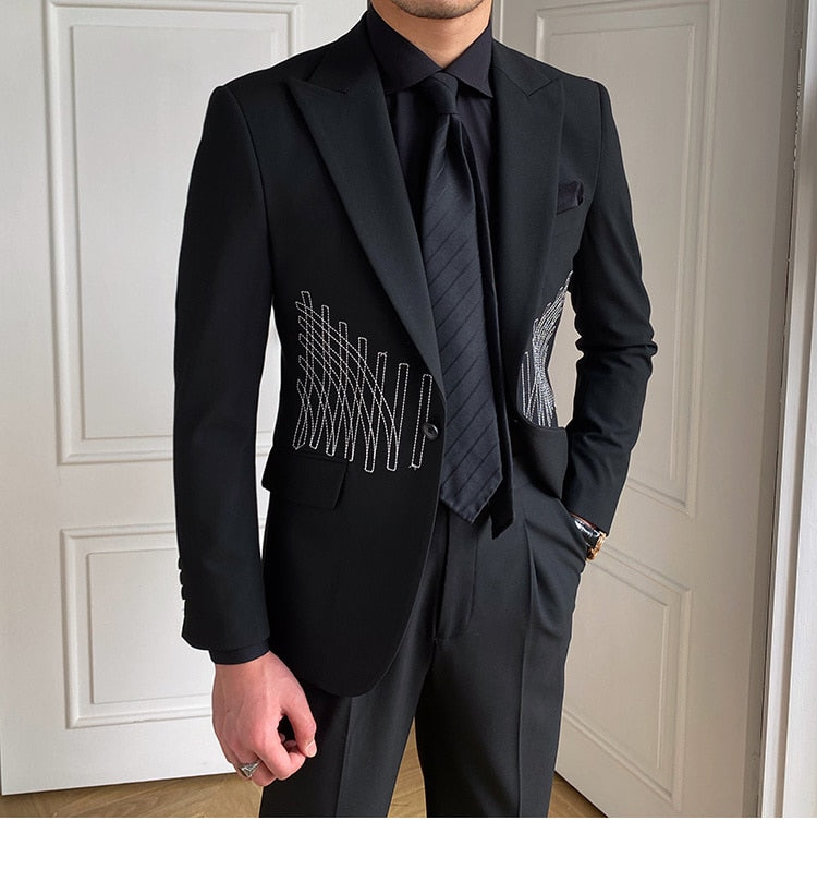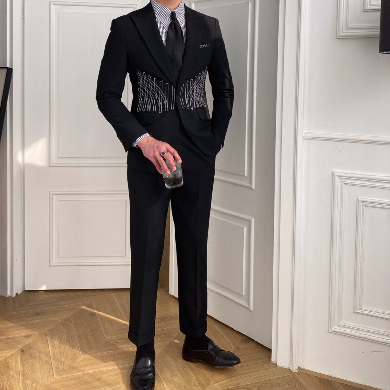 Embroidery Patterns Suit Two Piece Wedding Party Suit Groom Banquet Suit Slim Costume Homme