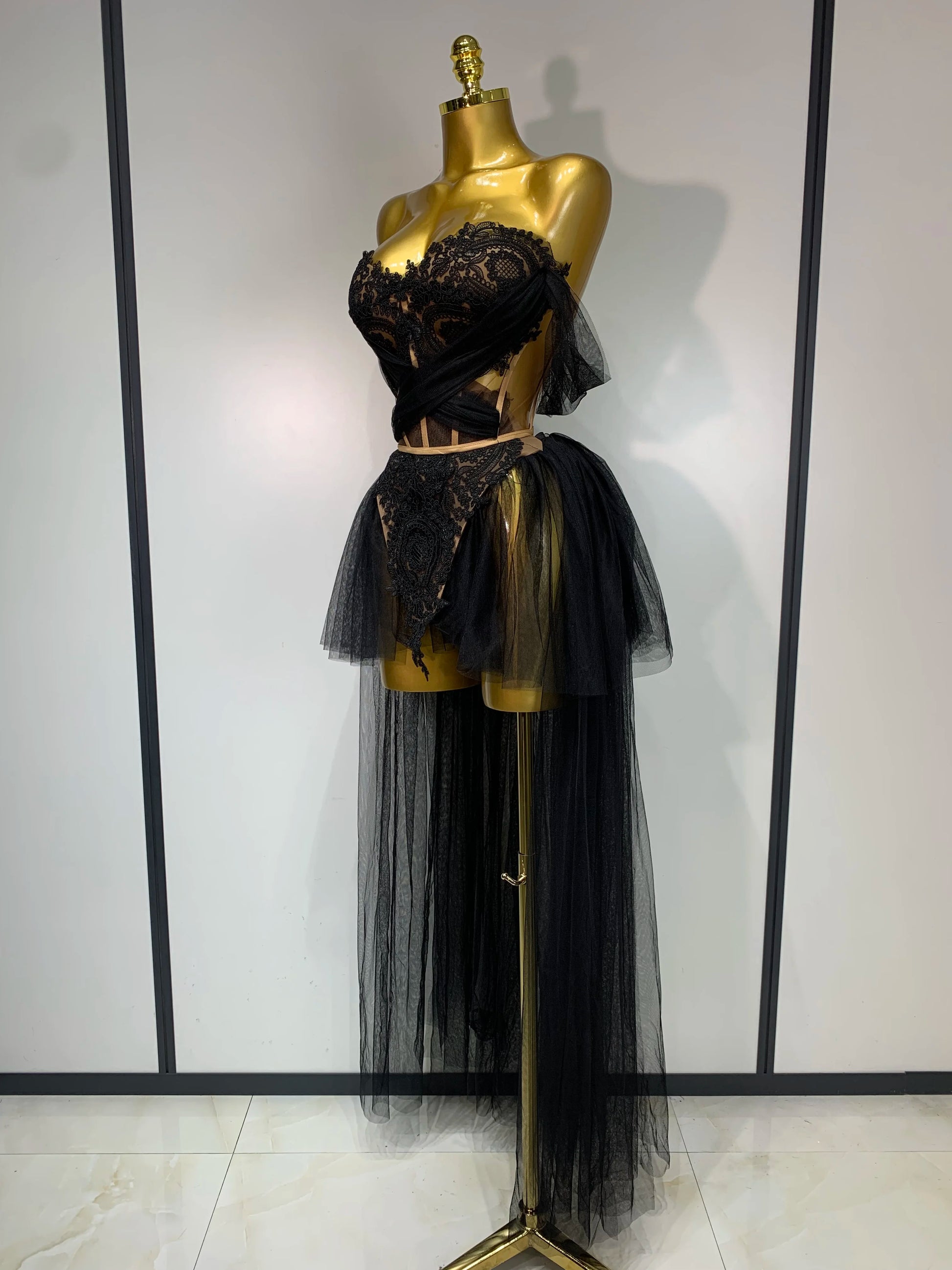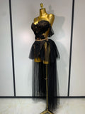 Sexy Cute Mesh Tops Skirt 2 PCS Set Women Celebrate Party Birthday Nightclub Performance Stage Show Outfit