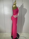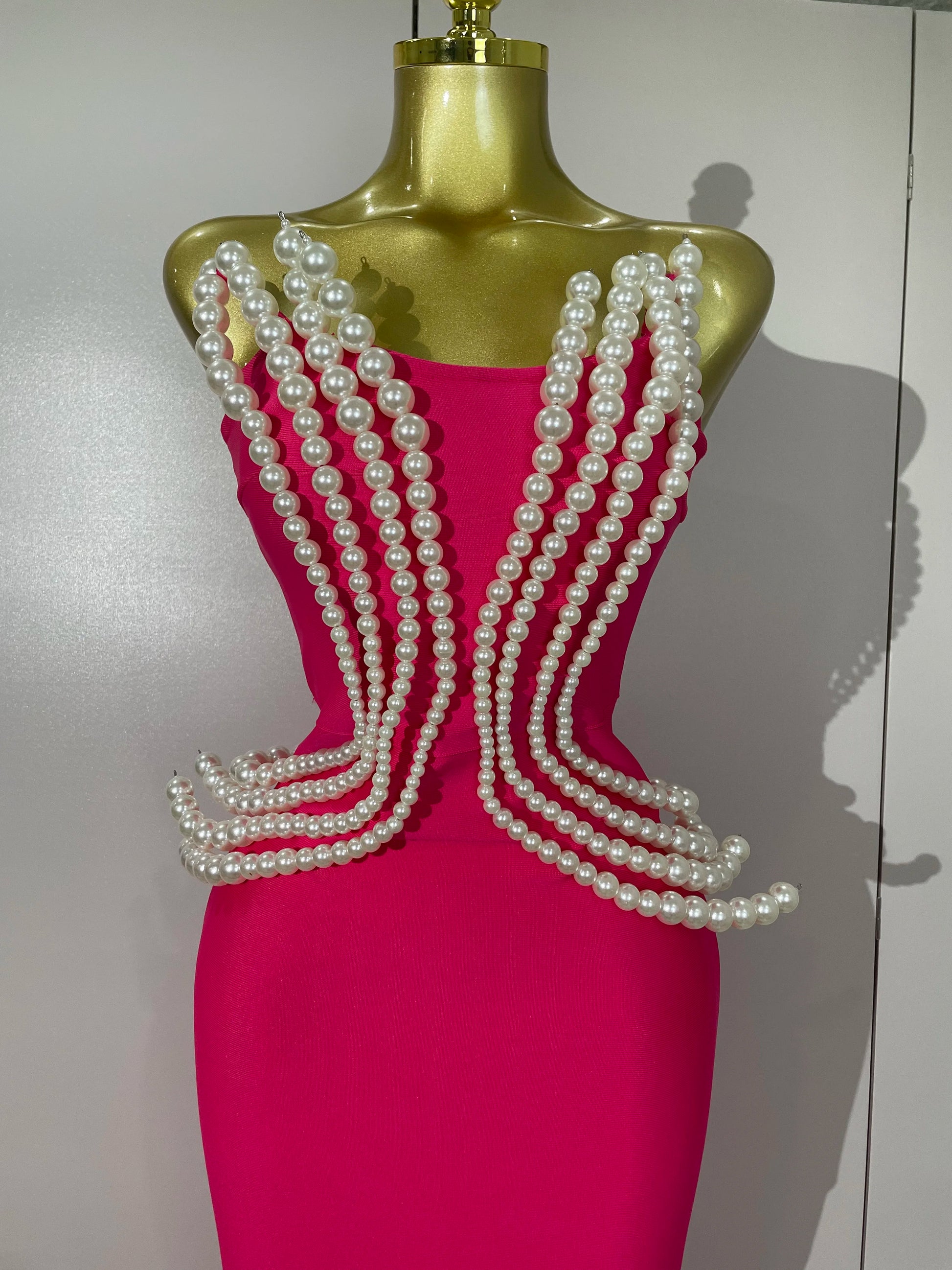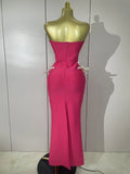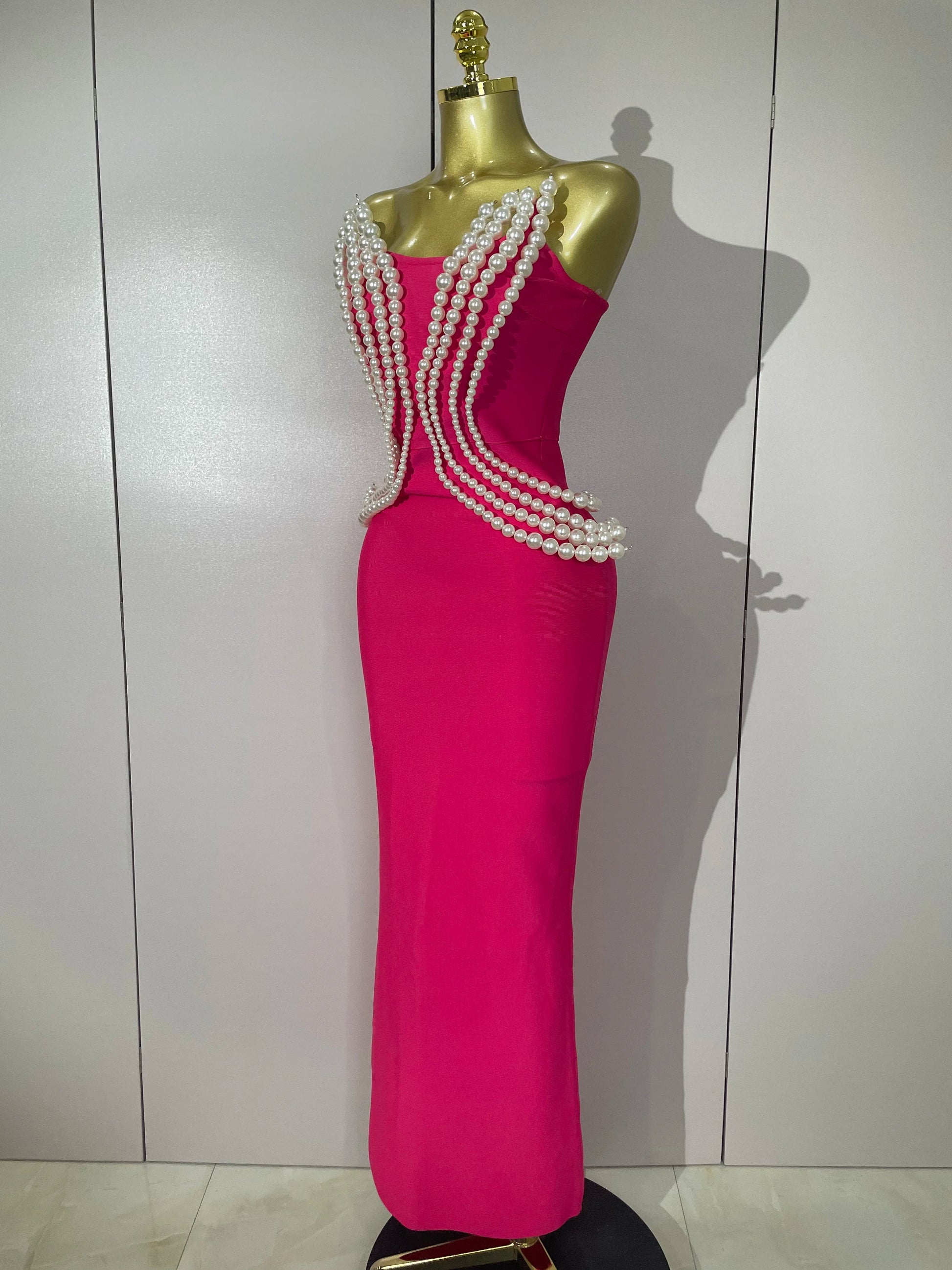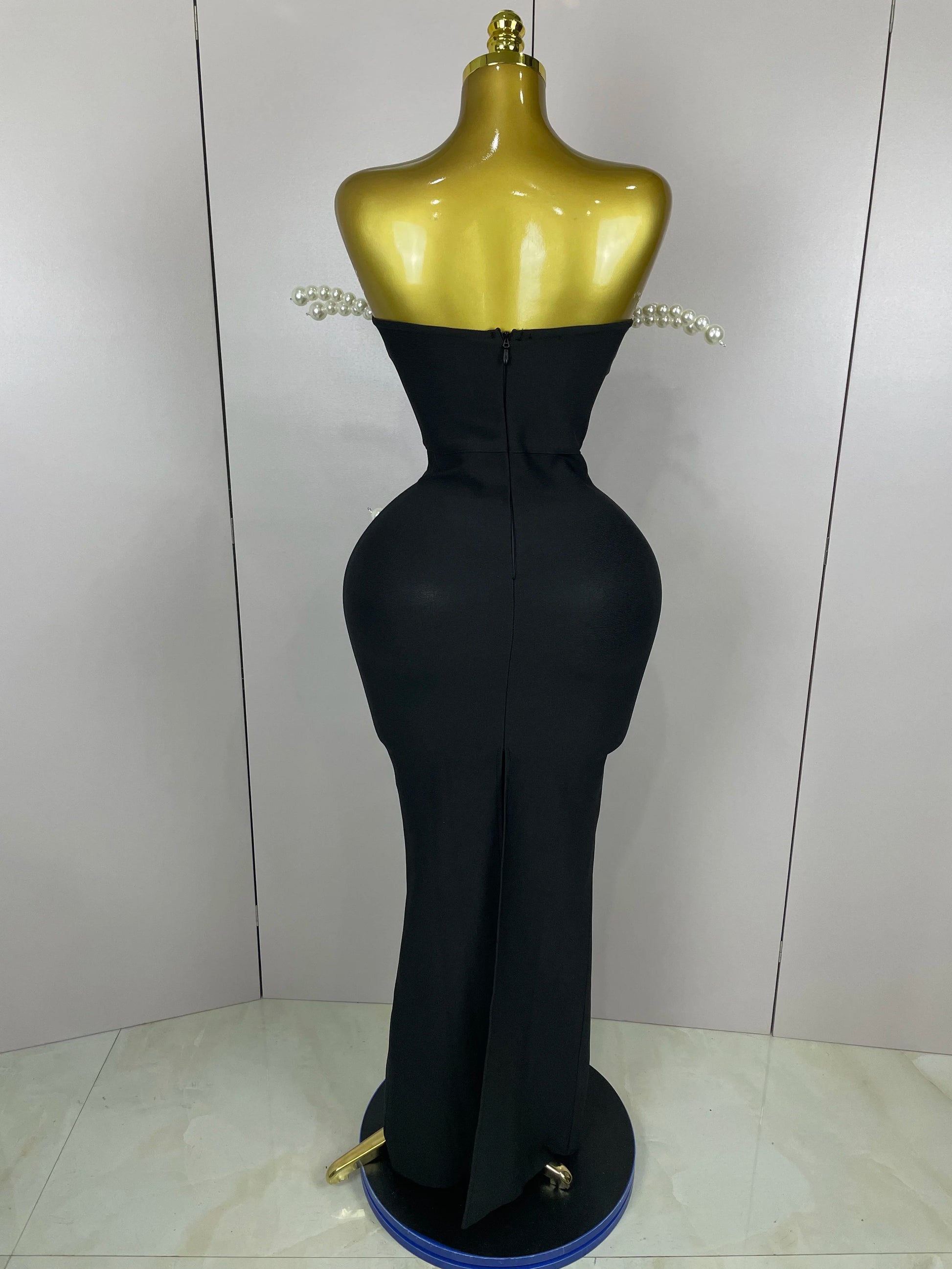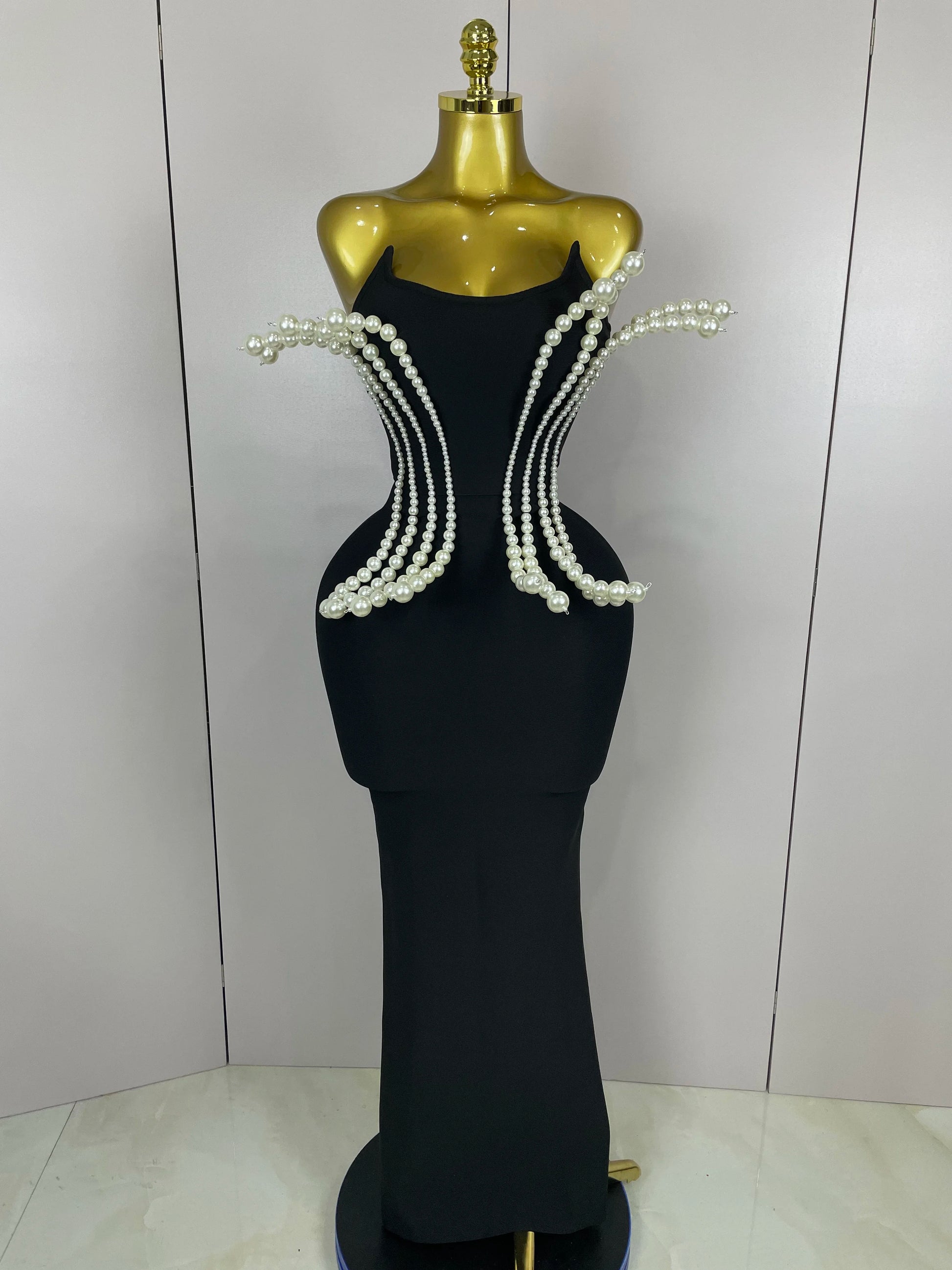 New Sexy Strapless Pearl Beading Bodycon Long Bandage Dress Women Fashion Elegant Evening Party Luxury Birthday Dresses