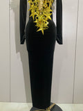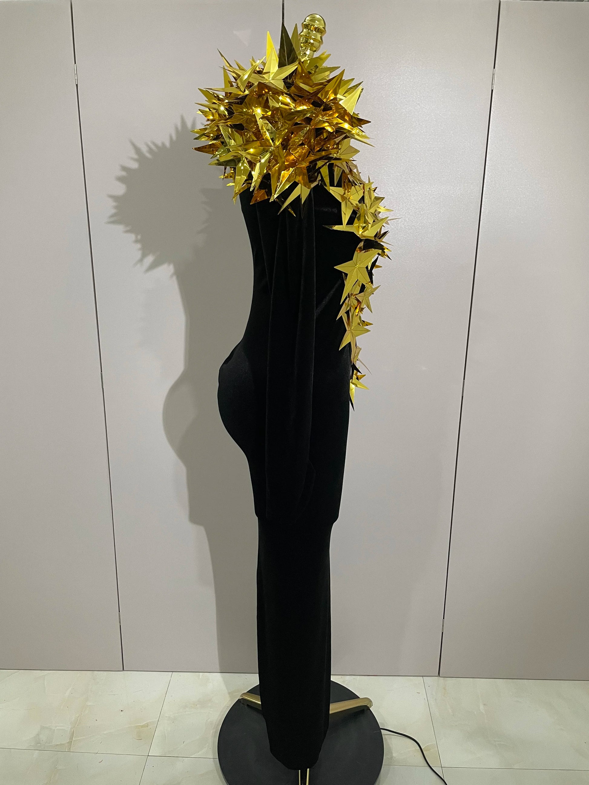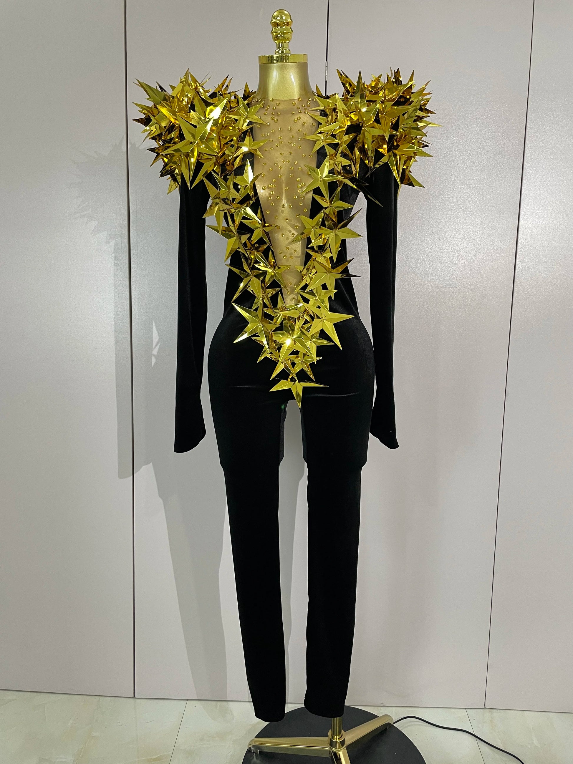 Make a dazzling entrance in this New Shiny Gold Star Rhinestone Velvet Long Dress — a show-stopping evening gown that blends luxe velvet with sparkling gold-star rhinestone detailing for maximum impact on stage, at parties, galas, and special celebrations. Designed for hosts, performers, and anyone who wants to shine, this dress pairs classic glamour with modern, performance-ready construction.