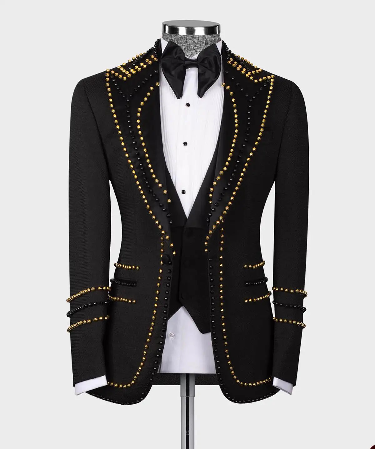 3 Piece Mens Suit Slim Fit Gentlemen Suit Handmade Beads Jacket Vest Pants Customized Wedding Formal Occasions Groom Tuxedo