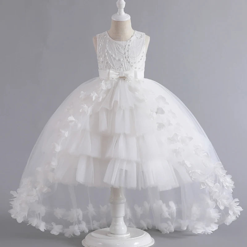 Dress your little girl in a stunning Girls' Formal Evening Trailing Dress, perfect for formal events, evening parties, performances, and dances. This sleeveless dress features a princess-style design with a fluffy cake silhouette that adds volume and elegance. The trailing hemline adds a touch of drama and sophistication, making your child stand out in the crowd. Whether she's attending a dinner, performance, or dance, this dress will make her feel like a princess. Let your little girl twirl and dance in style with this enchanting gown that will make her special occasion even more memorable.
