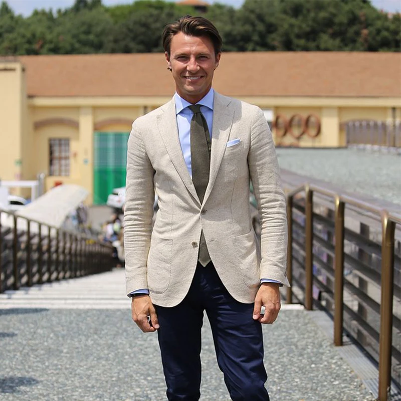 Beige 2 Piece Slim Fit Men Suit With Navy Pants Tailor Made Groom Wedding Tuxedo Prom Wedding Men Suit Set